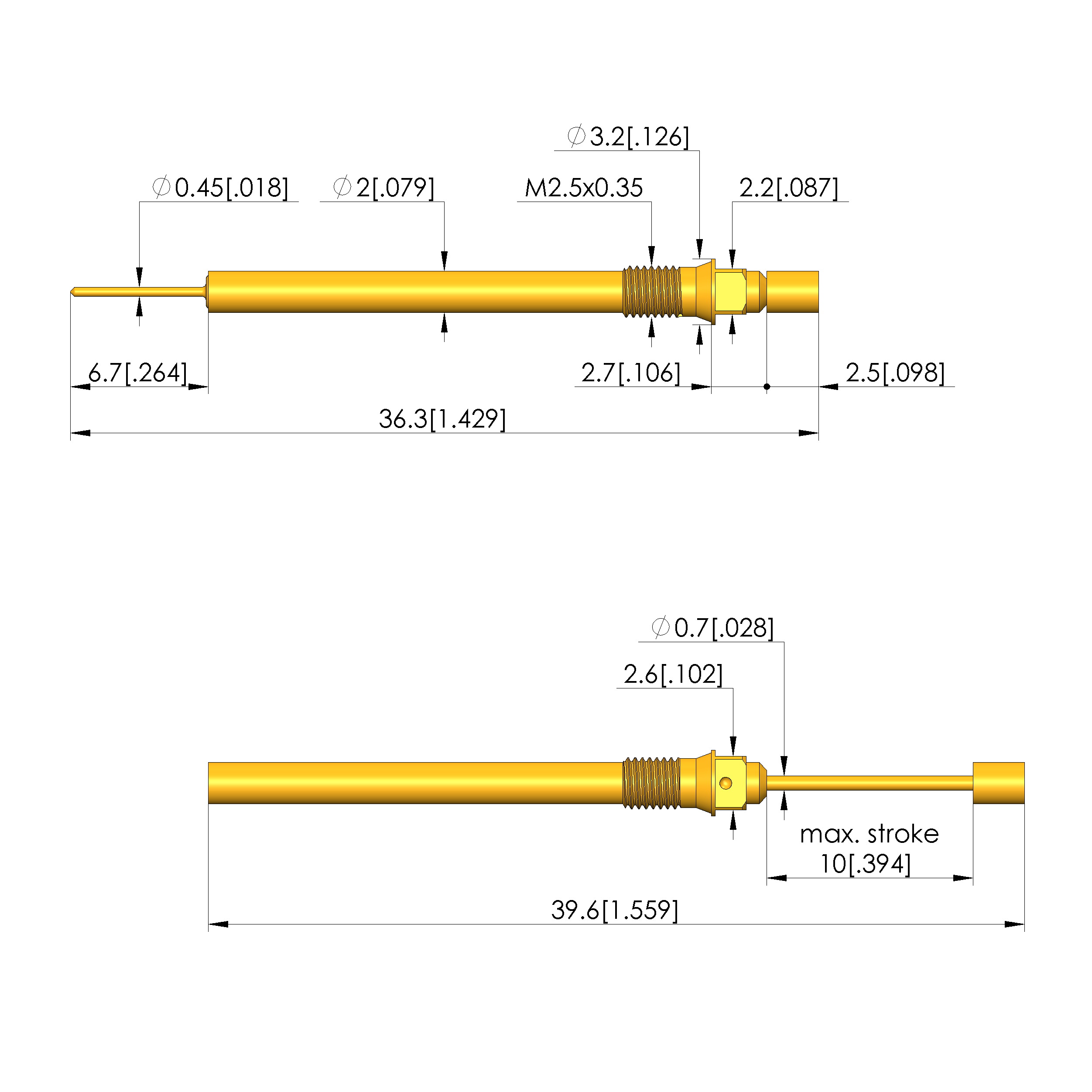 - Spring force at working stroke: 0.6 N [2.15 ozf]