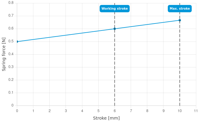| Spring force at working stroke: | 0.6 N [2.15 ozf] |