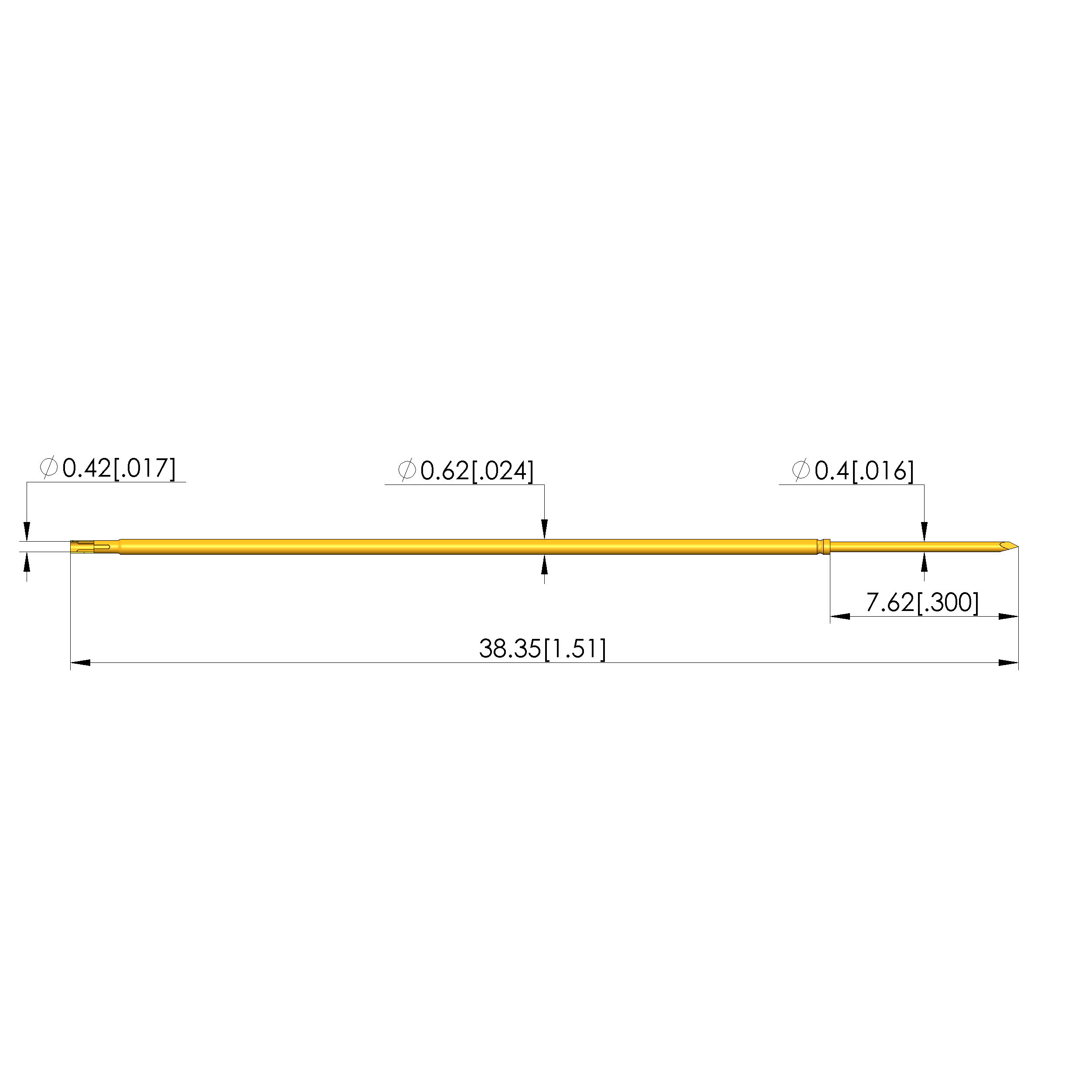 - Barrel diameter: 0.62 mm [.024 in]