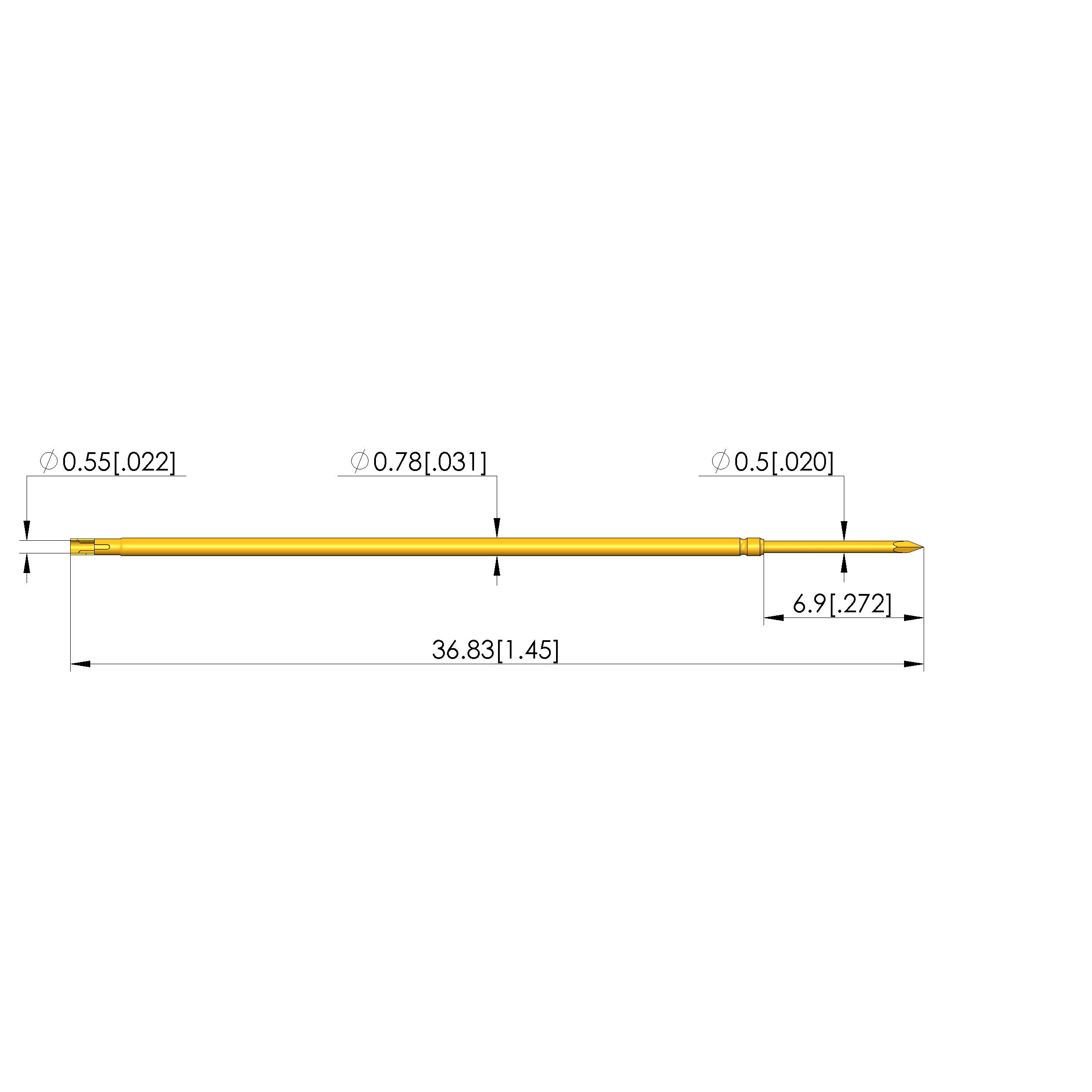 | Barrel diameter: | 0.78 mm [.03 in] |