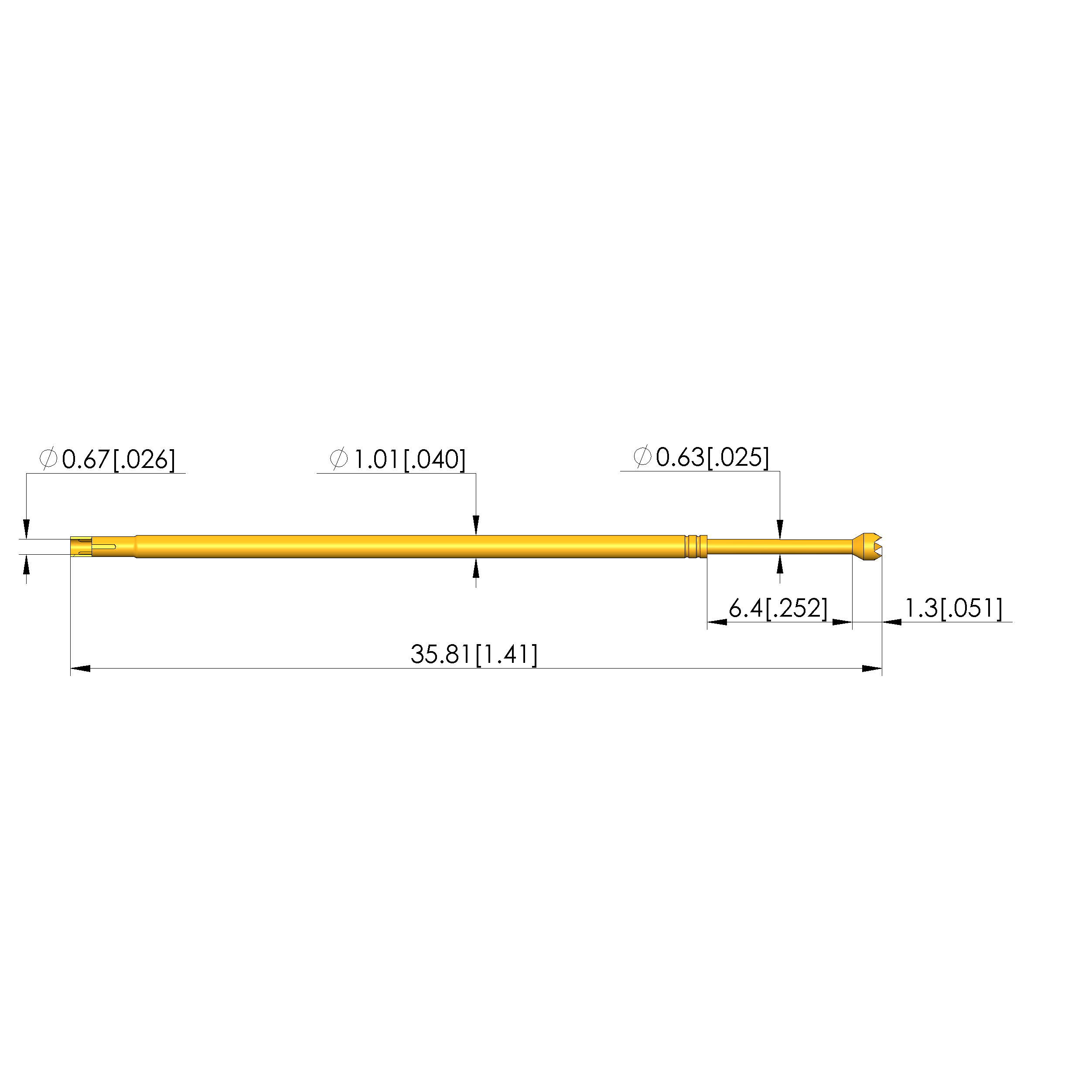 - Barrel diameter: 1.02 mm [.04 in]