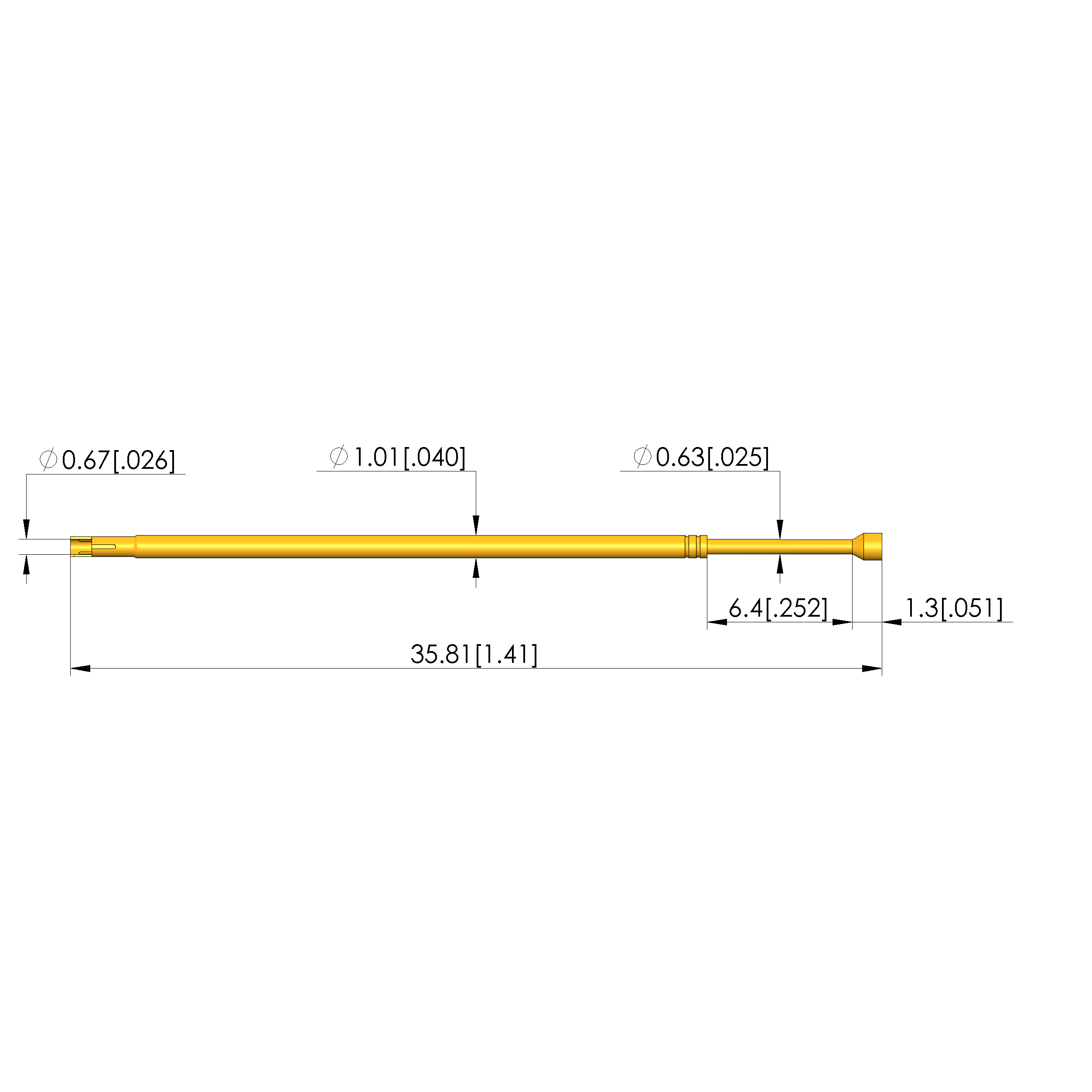 • Barrel diameter: 1.02 mm [.04 in]