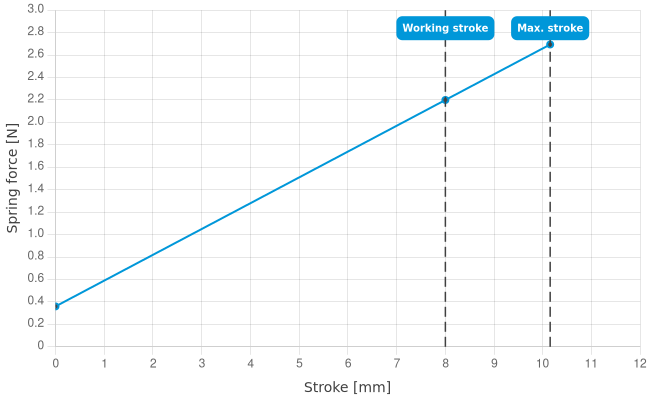 | Spring force at working stroke: | 2.2 N [7.91 ozf] |