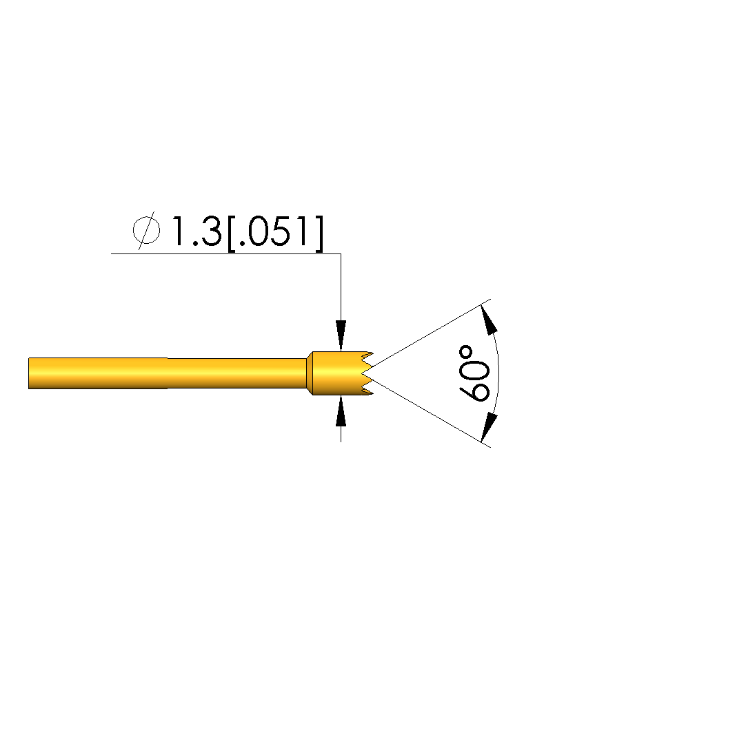 - Tip diameter: 1.3 mm [.051 in]