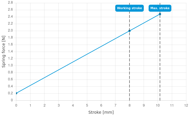 | Spring force at working stroke: | 2 N [7.19 ozf] |