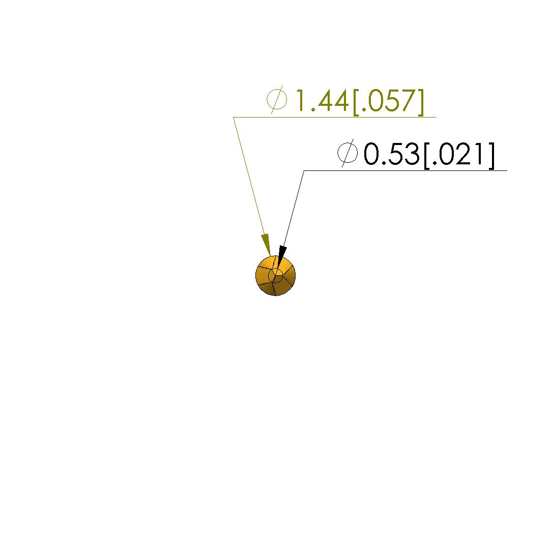 | Mounting hole in probe plate (KTP): | 1.39 – 1.41 mm [.054 – .055 in] |