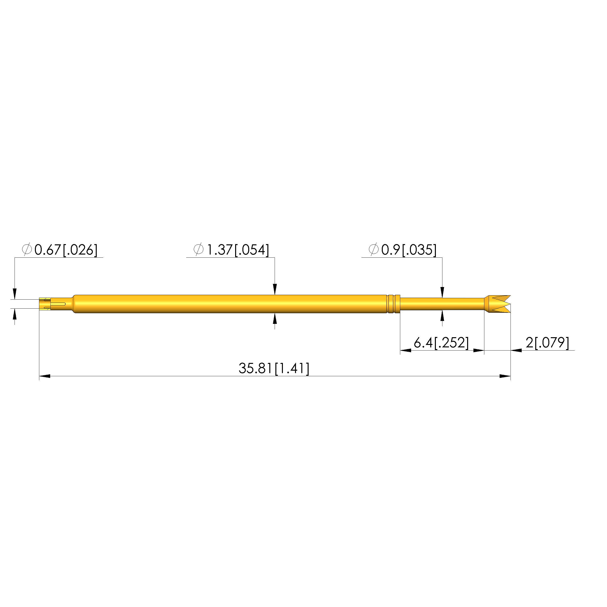 • Mounting hole in probe plate (KTP): 1.39 – 1.41 mm [.054 – .055 in]