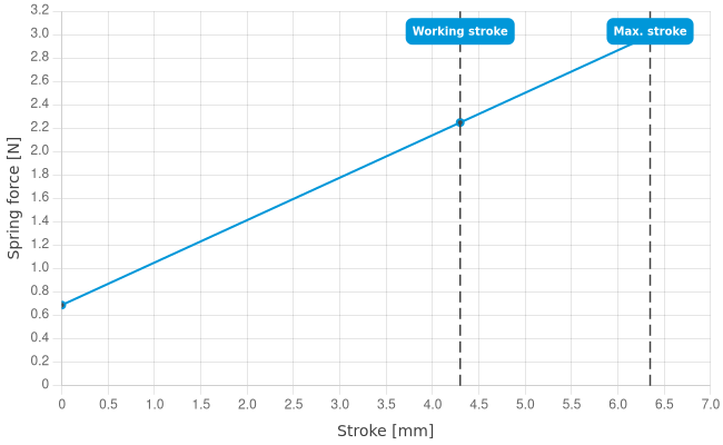 • Spring force at working stroke: 2.25 N [8.09 ozf]
