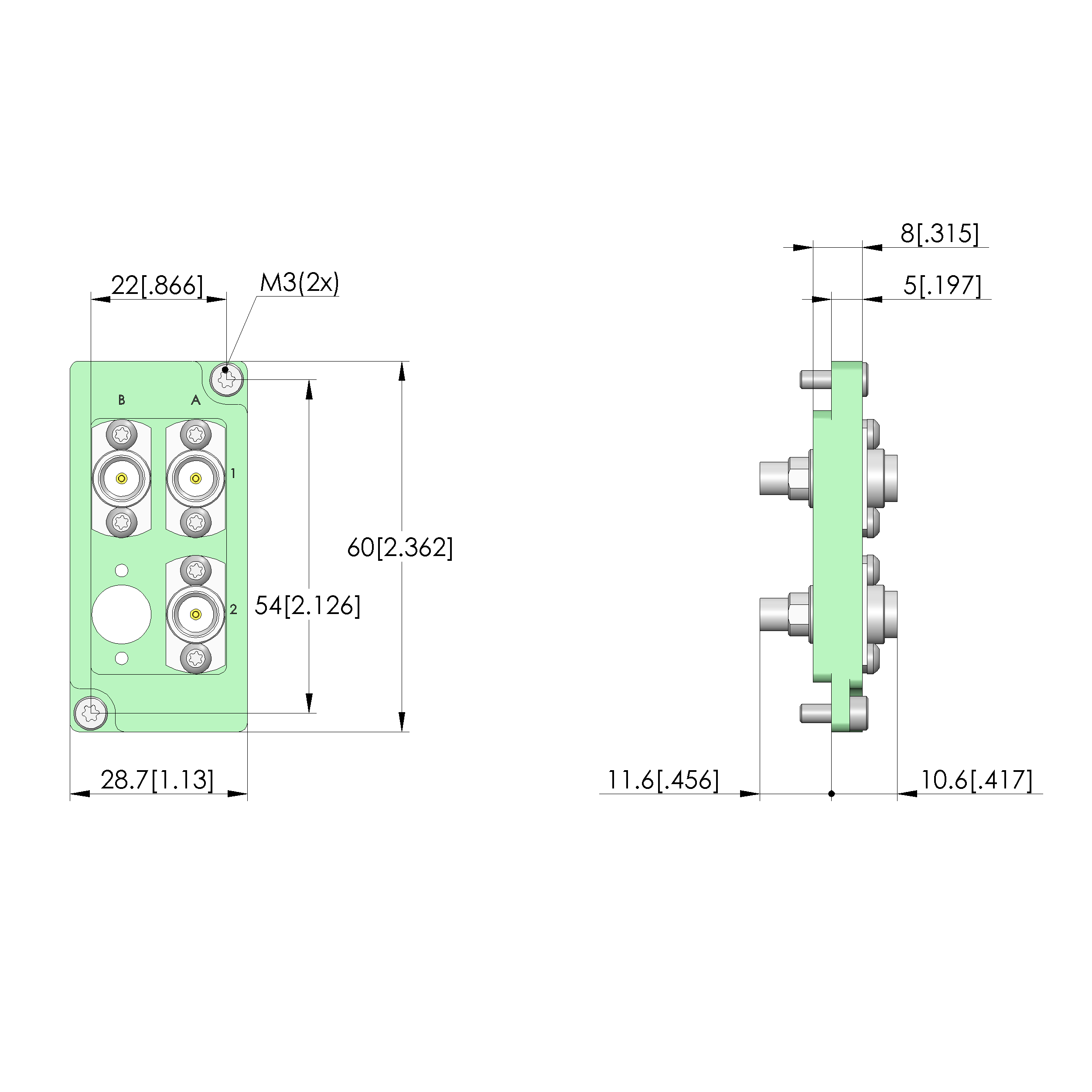 - Bestückung: STV-BMA/SMA-F/F-18GHz-50OHM-FL