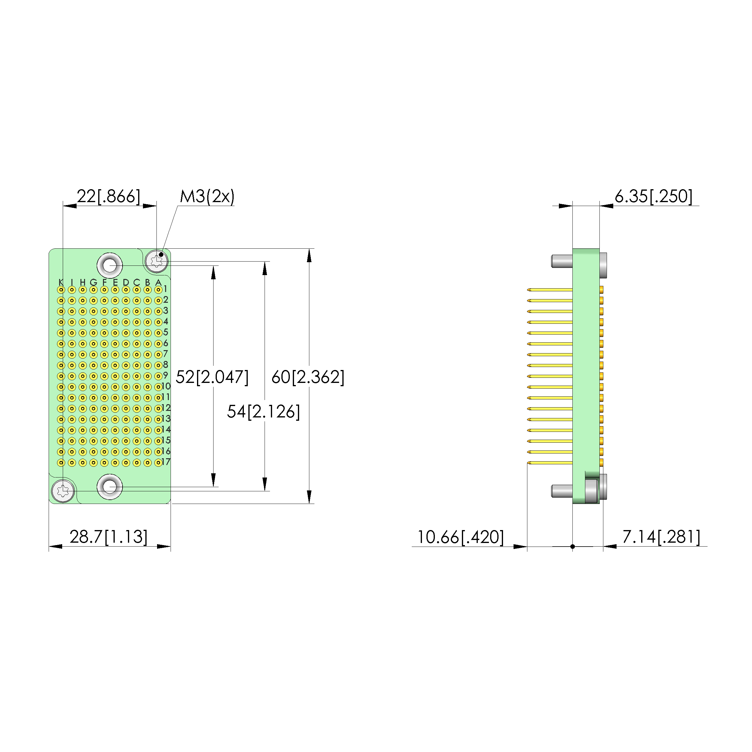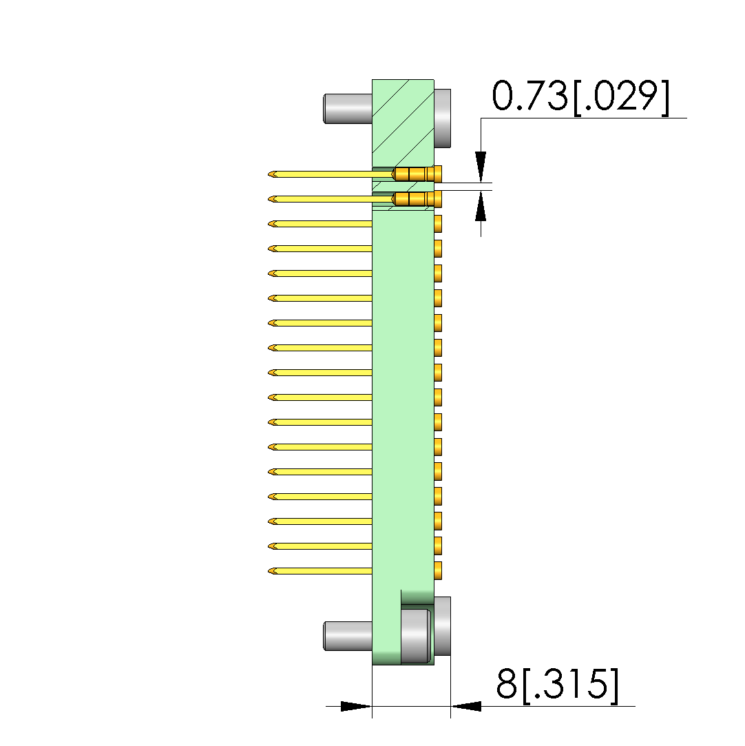 | Air distance (not wired): | 0.64 mm [.025 in] |