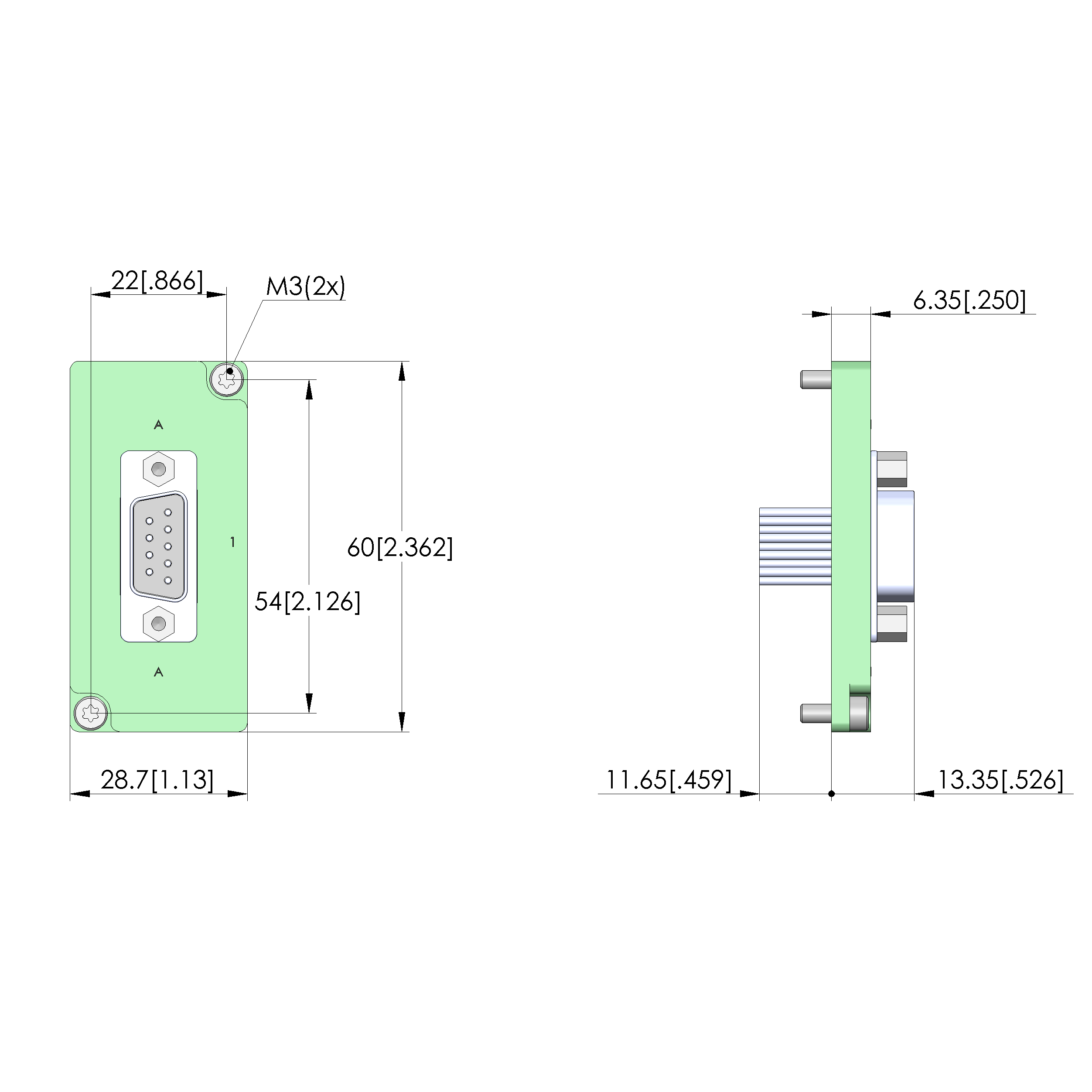 - Populated with Sub-D plug connector STV-SUBD-F-009-WW-G13