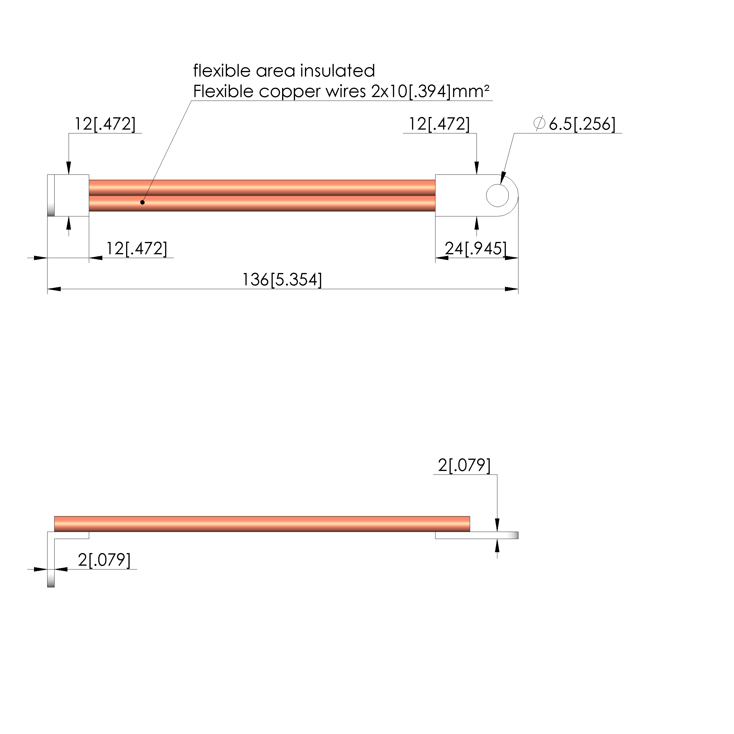 • Flexible copper cables to compensate the movement of the plunger