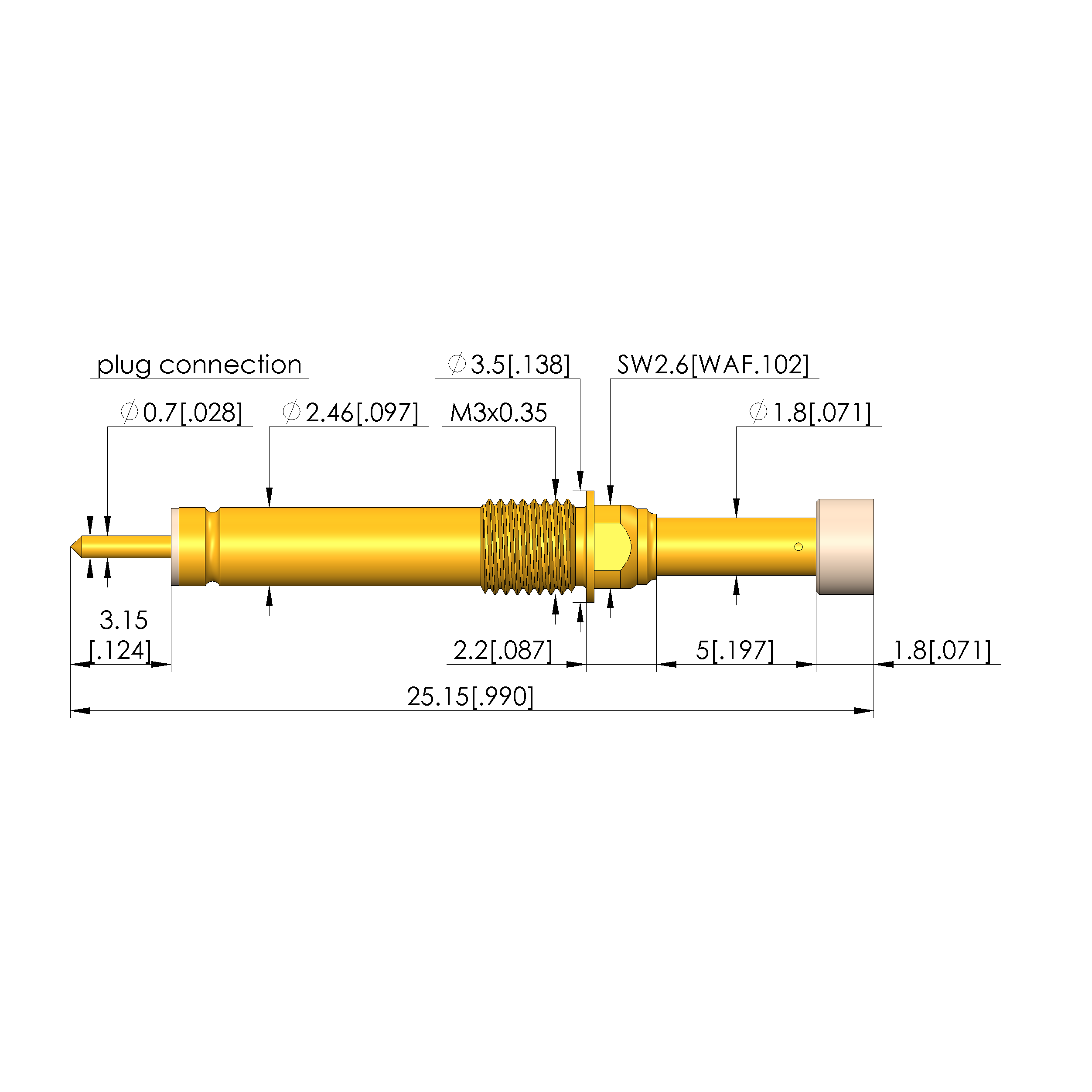 | Total length: | 25.1 mm [.99 in] |