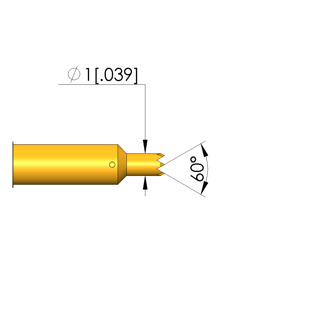 - Tip diameter: 1 mm [.039 in]