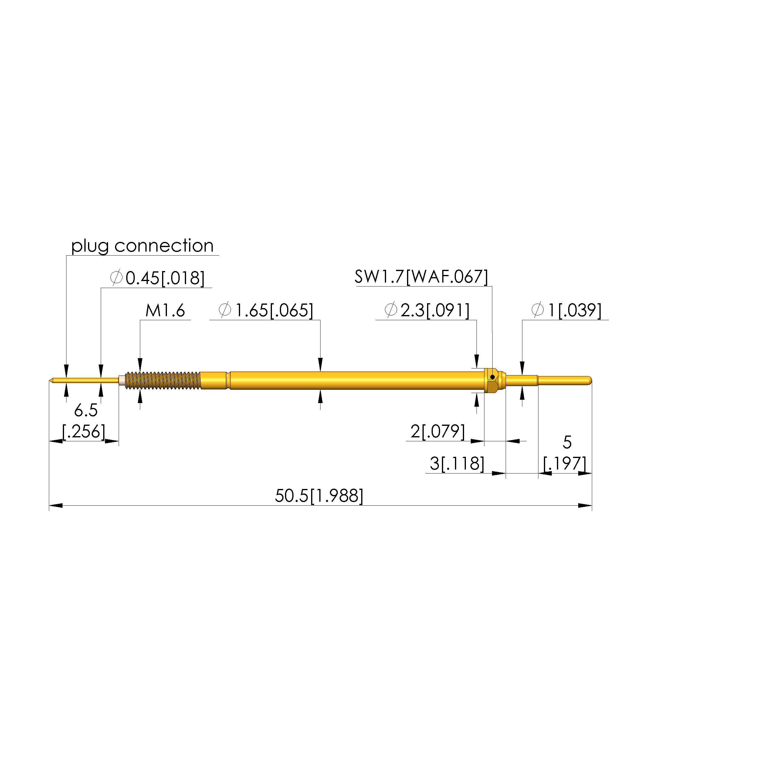 • Barrel diameter: 1.65 mm [.064 in]