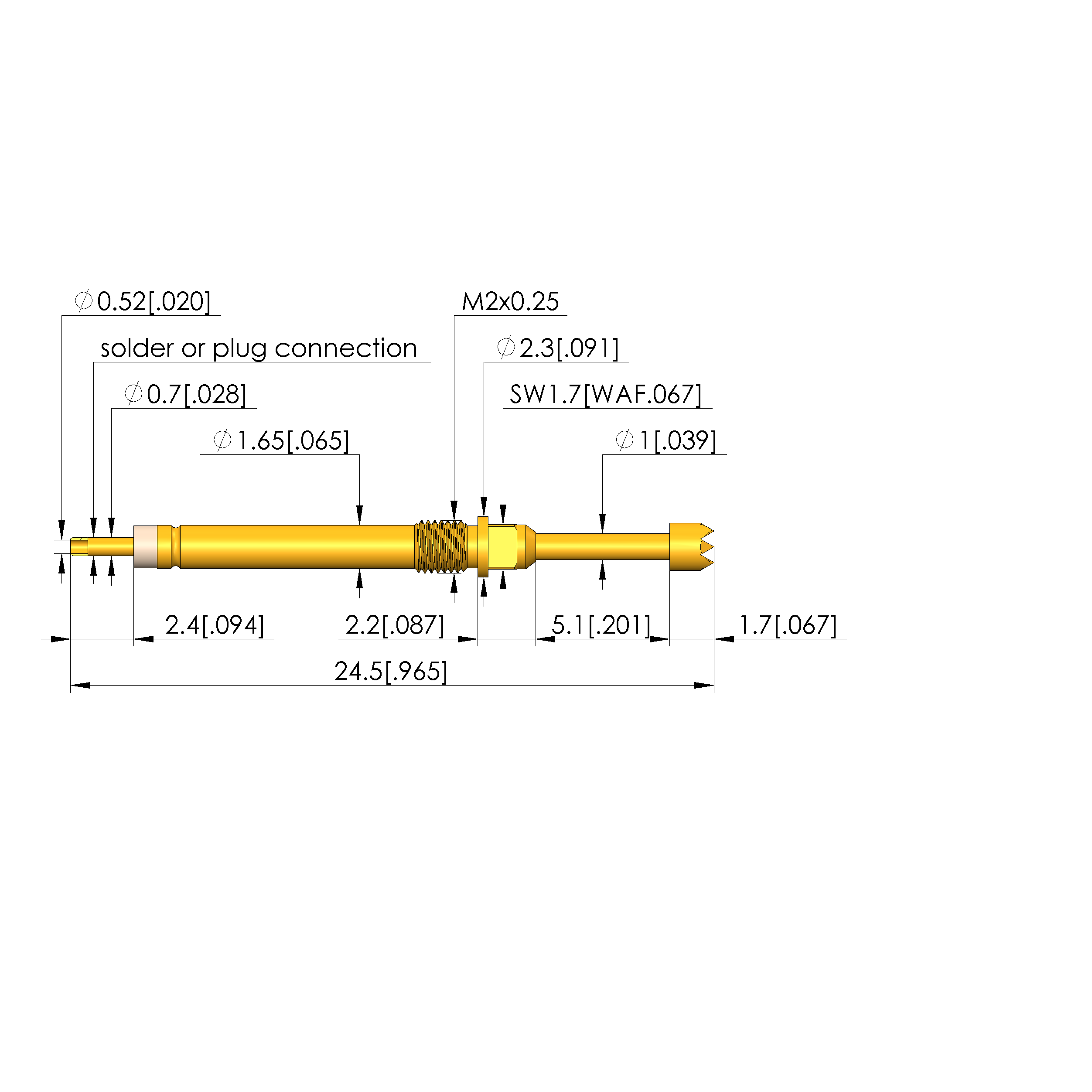 - Barrel diameter: 1.65 mm [.064 in]