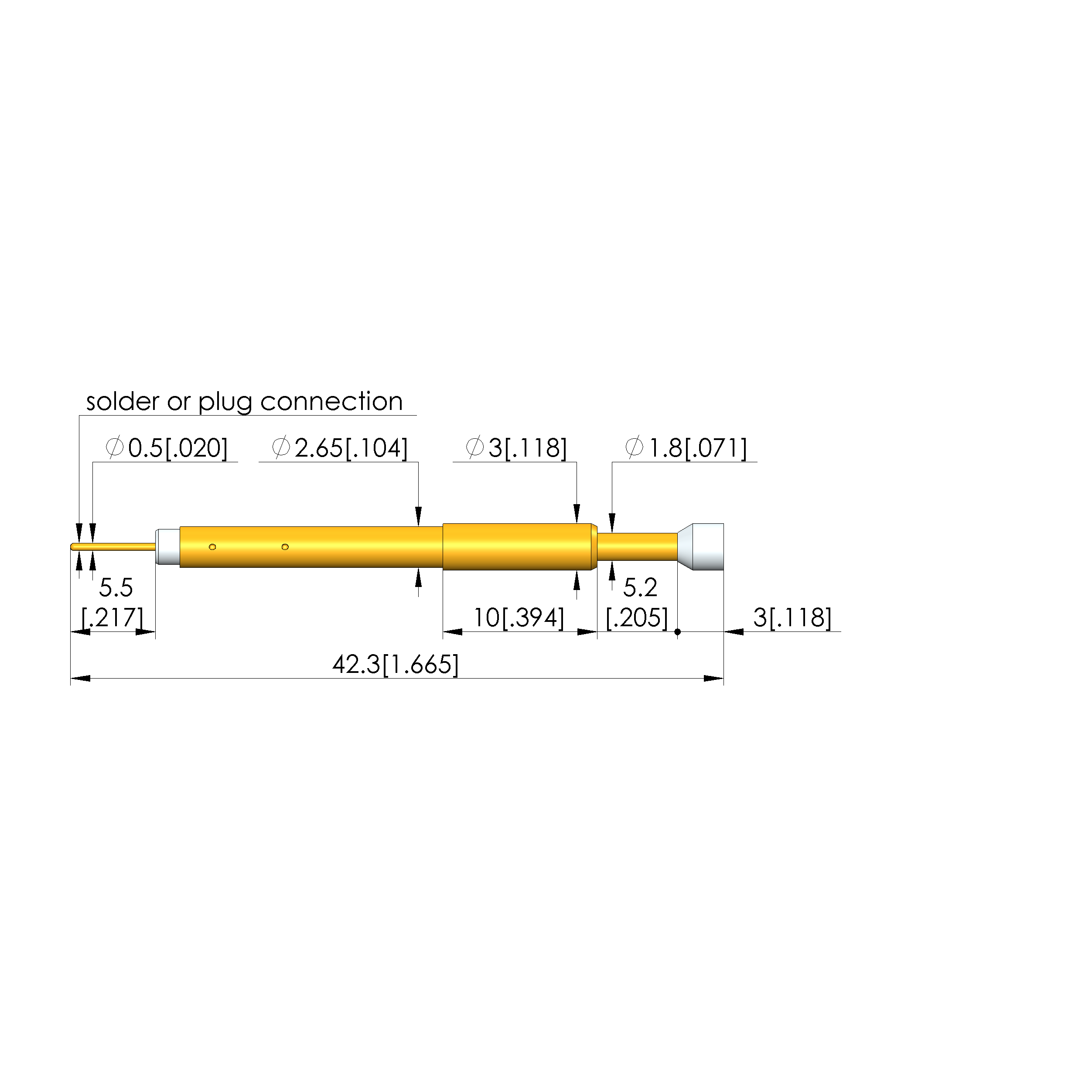 - Barrel diameter: 2.65 mm [.104 in]