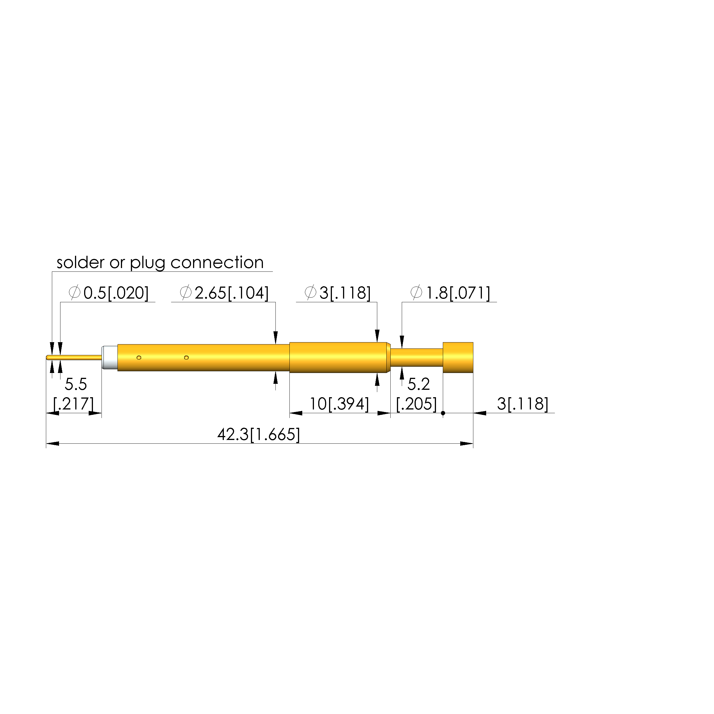- Barrel diameter: 2.65 mm [.104 in]
