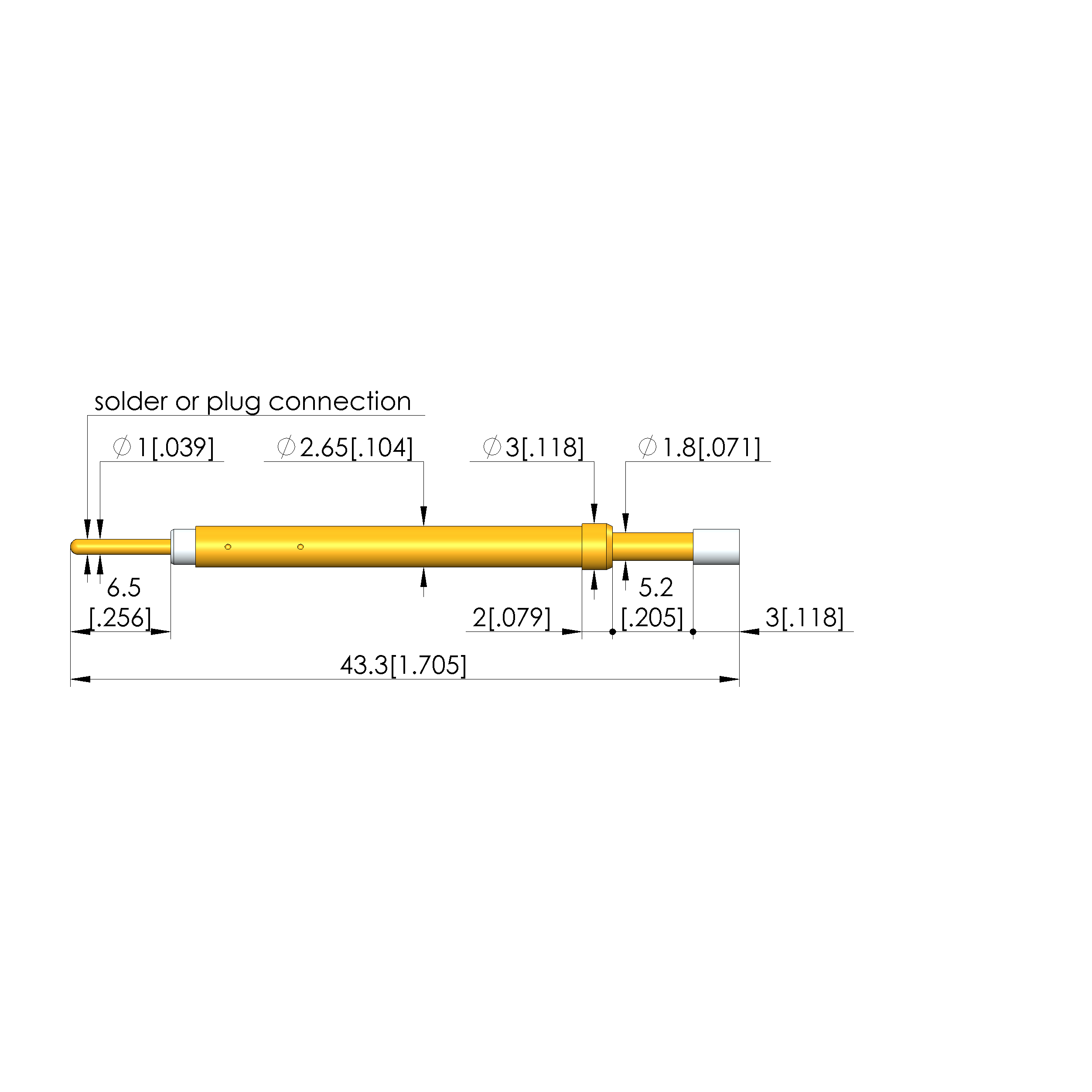 • Barrel diameter: 2.65 mm [.104 in]