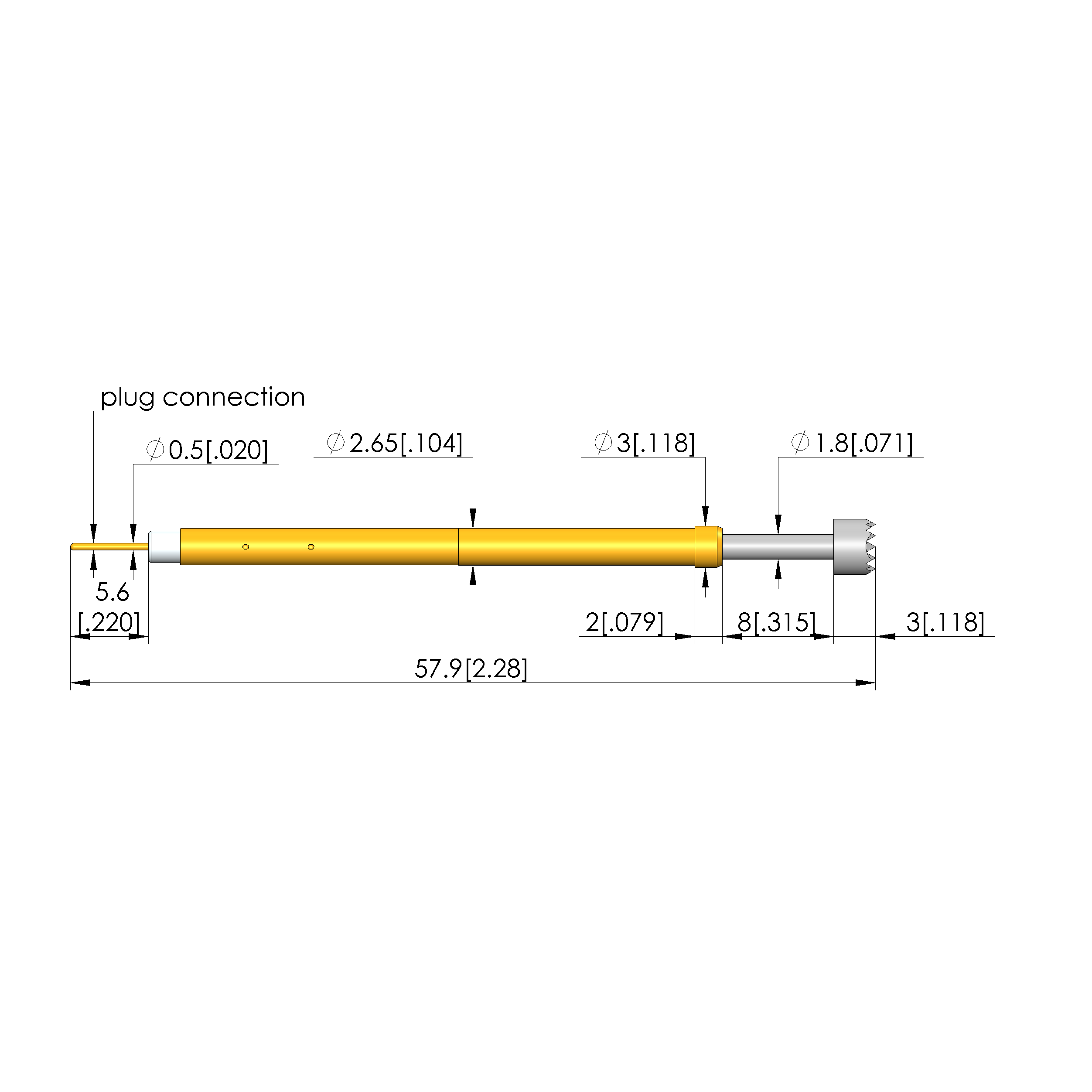 - Barrel diameter: 2.65 mm [.104 in]