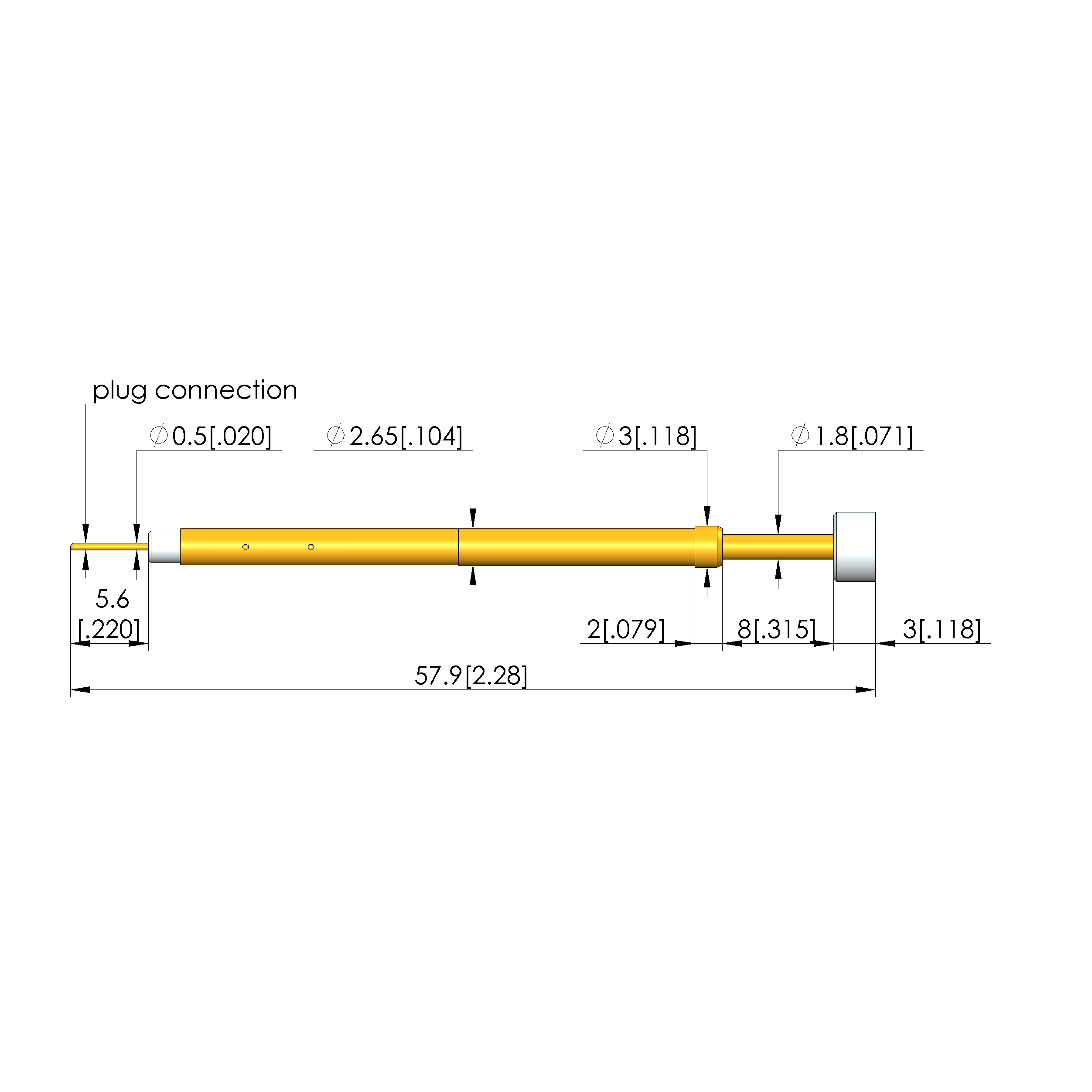 • Spring force at working stroke: 2.5 N [8.99 ozf]