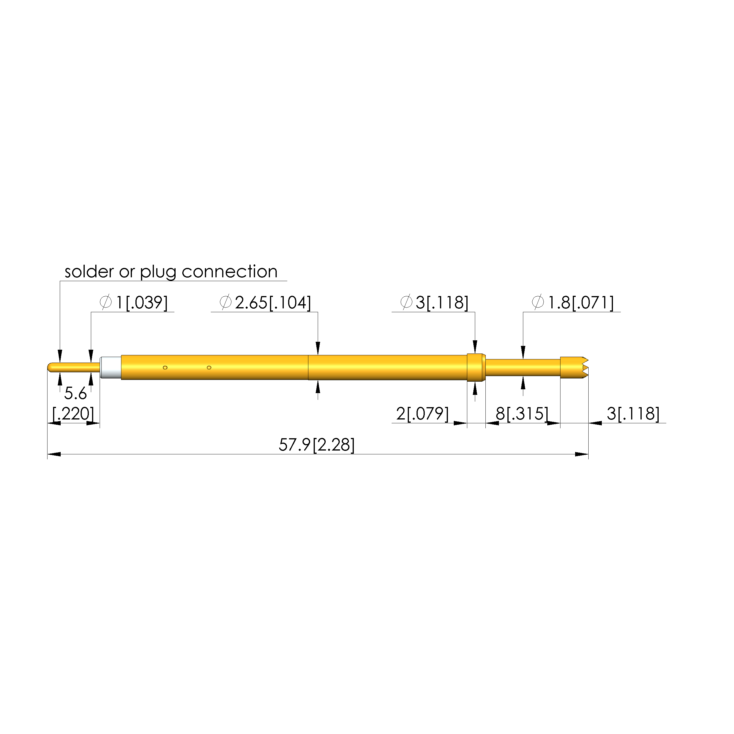 • Barrel diameter: 2.65 mm [.104 in]