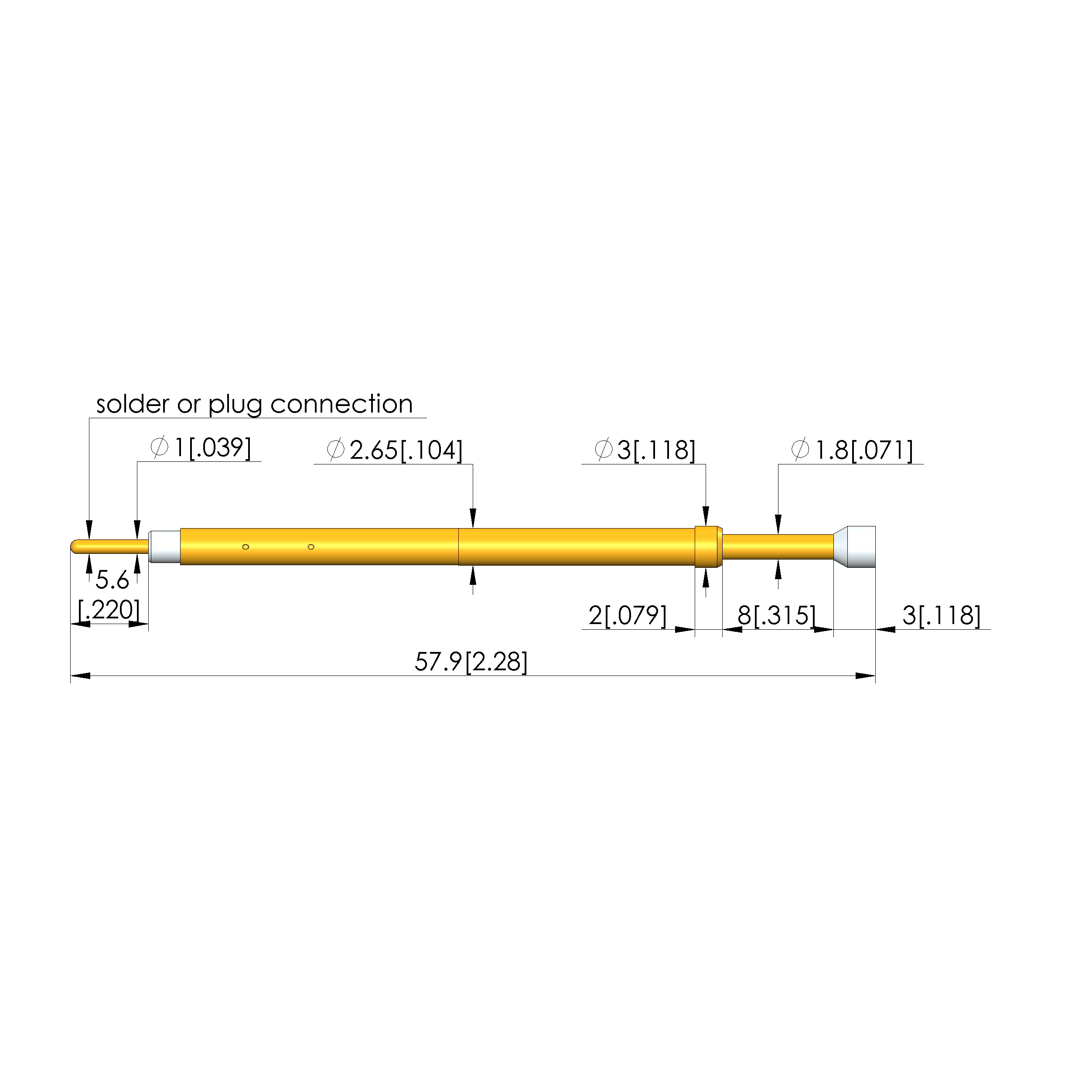 - Barrel diameter: 2.65 mm [.104 in]