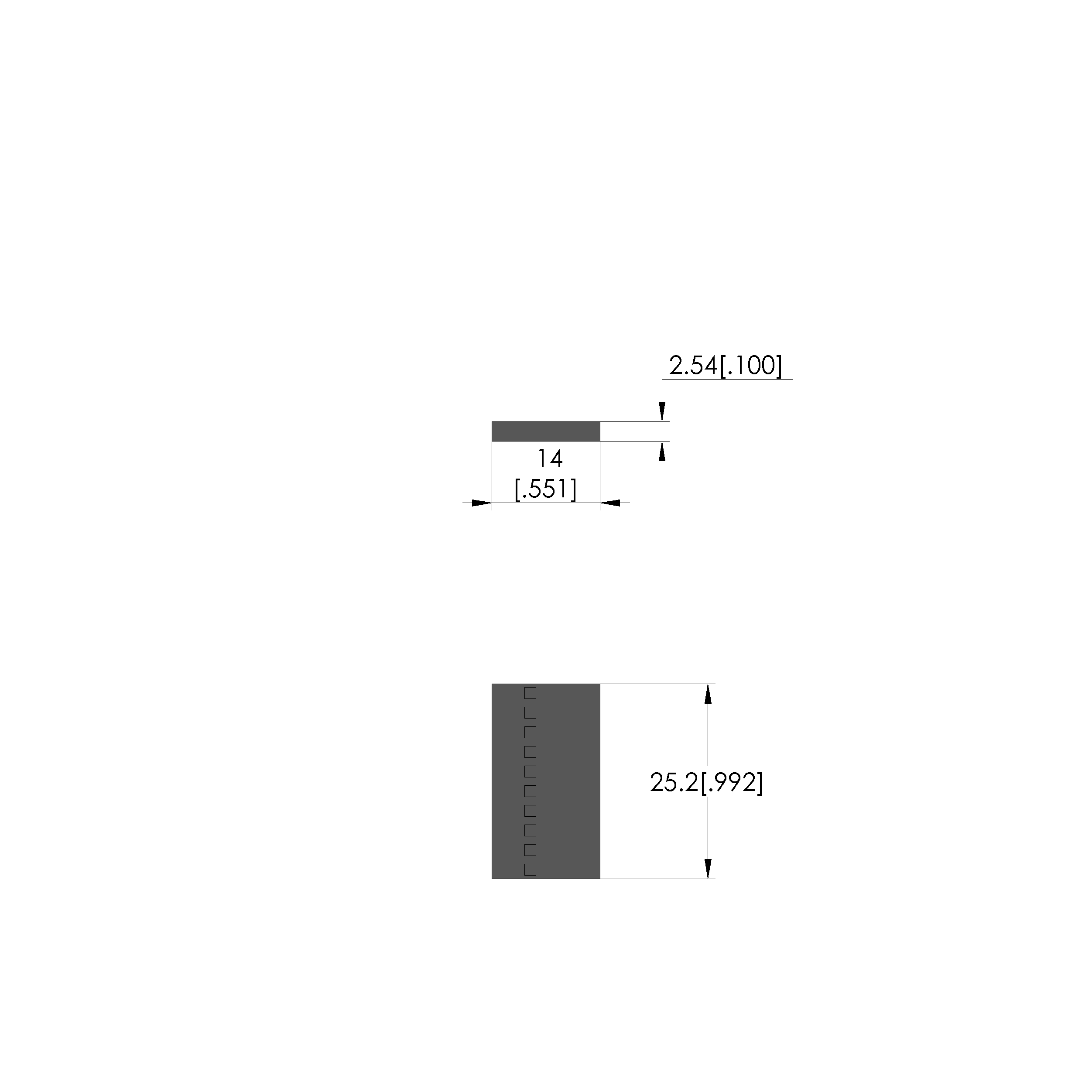 • Outer dimensionS (WxDxH): 25.2 x 14 x 2.54 mm [.992 x .551 x .1 in]