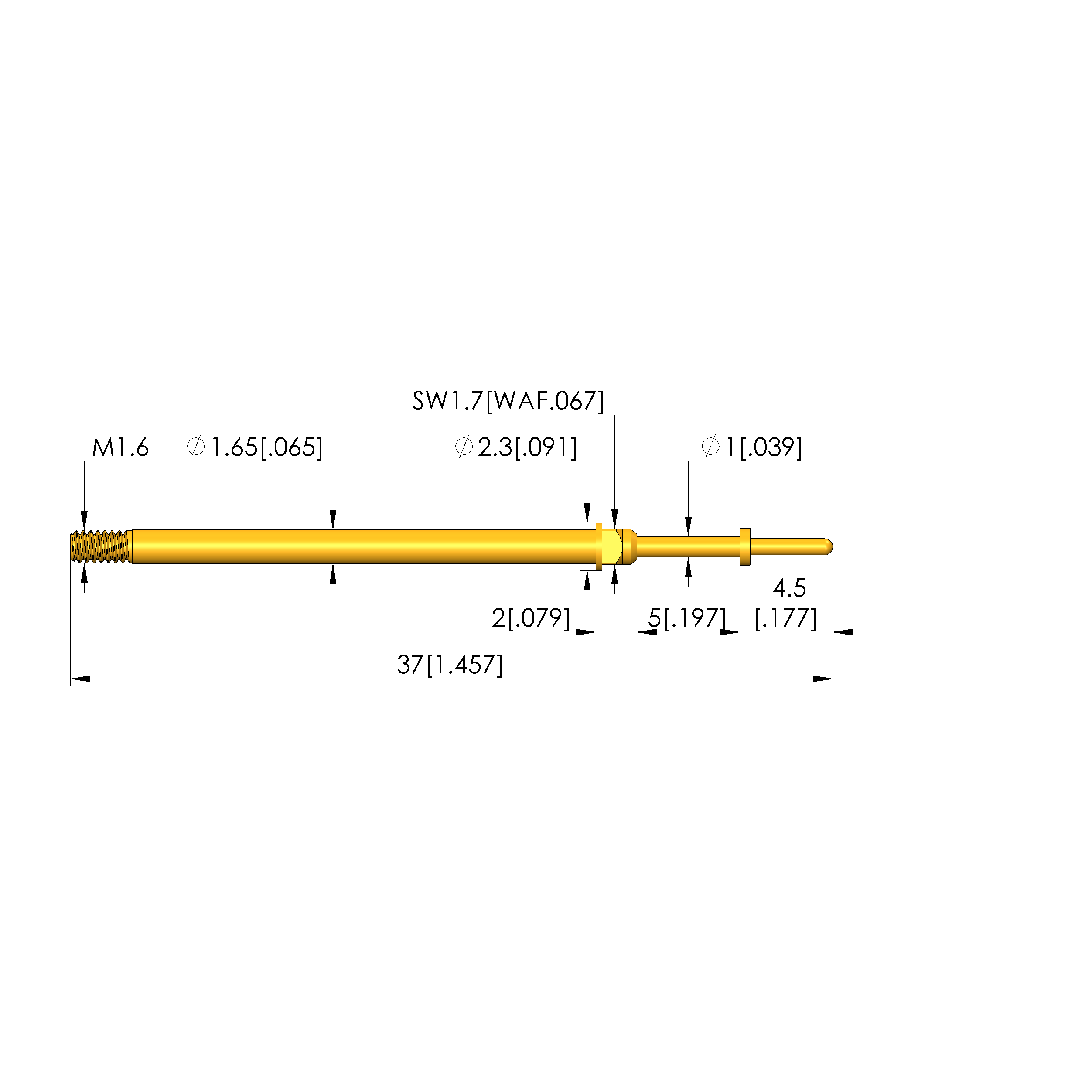 - Barrel diameter: 1.65 mm [.064 in]