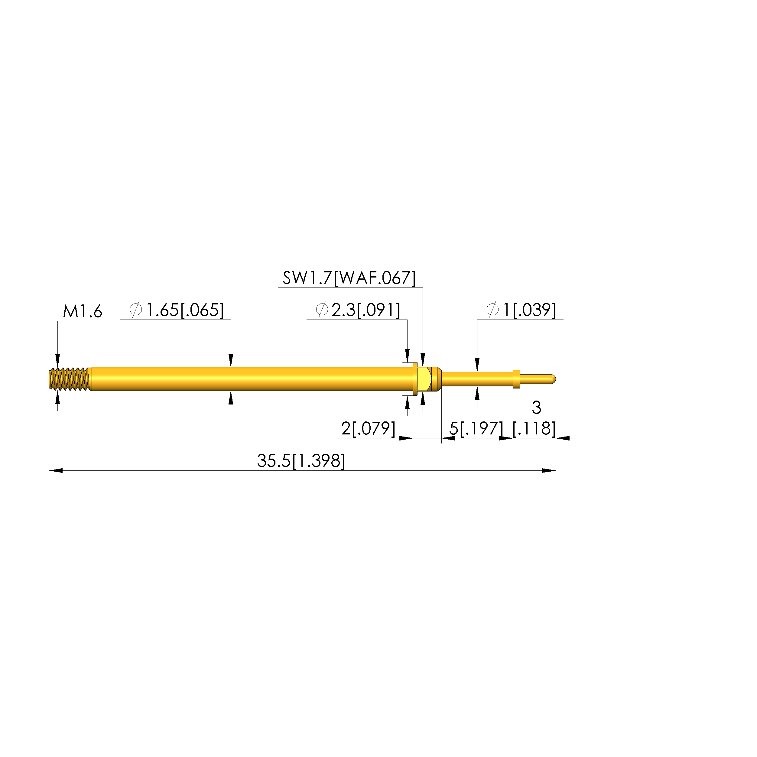 • Barrel diameter: 1.65 mm [.064 in]