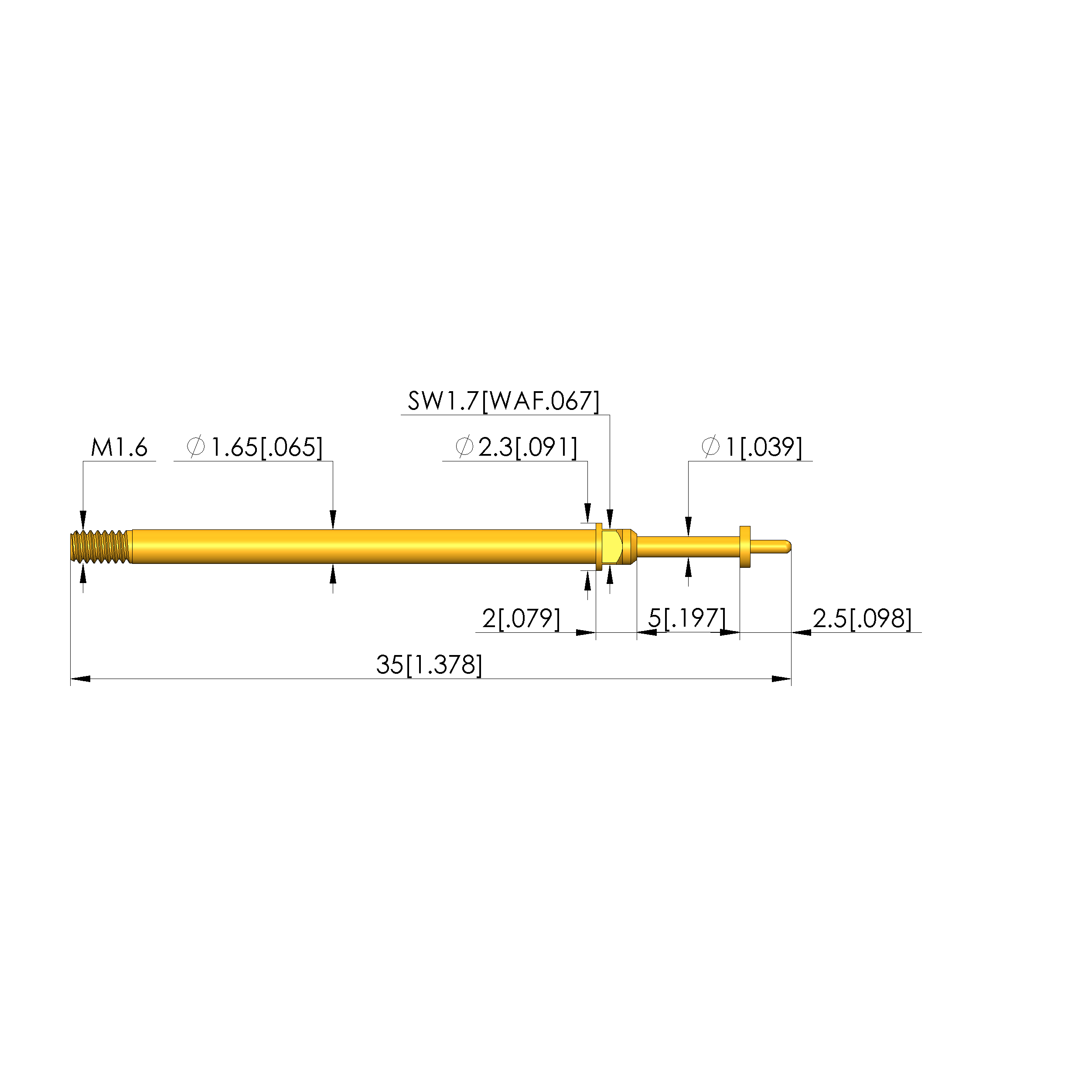 • Barrel diameter: 1.65 mm [.064 in]