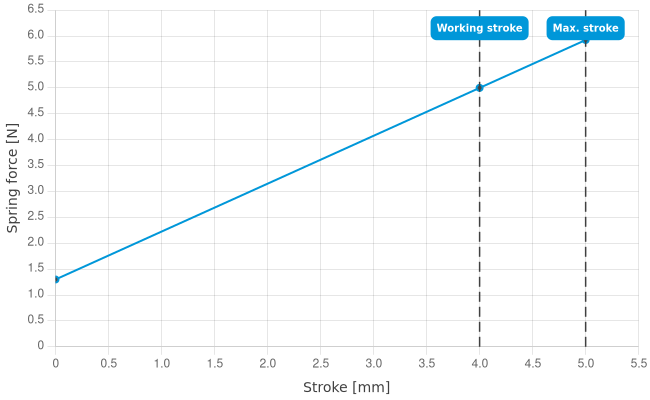 • Spring force at working stroke: 5 N [17.9 ozf]