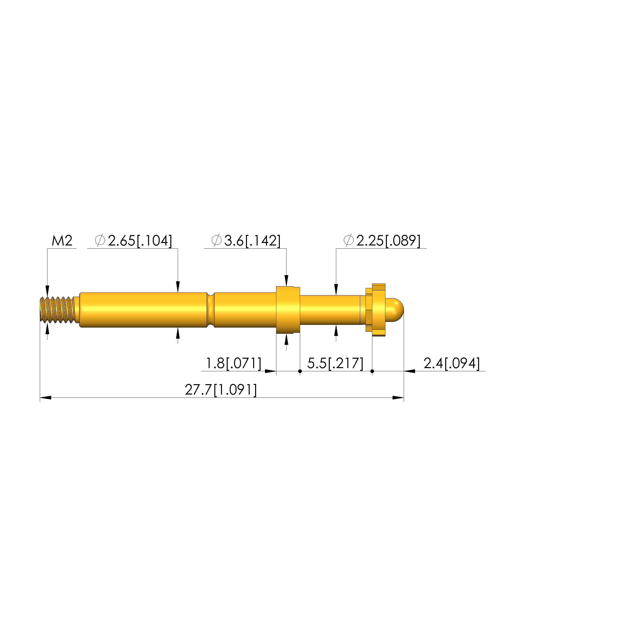 - Barrel diameter: 2.65 mm [.104 in]