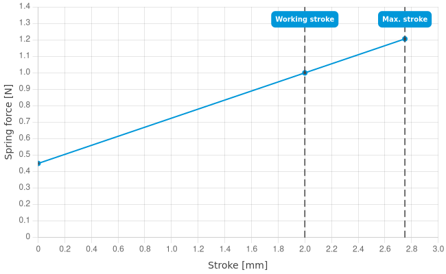 | Spring force at working stroke: | 1 N [3.59 ozf] |