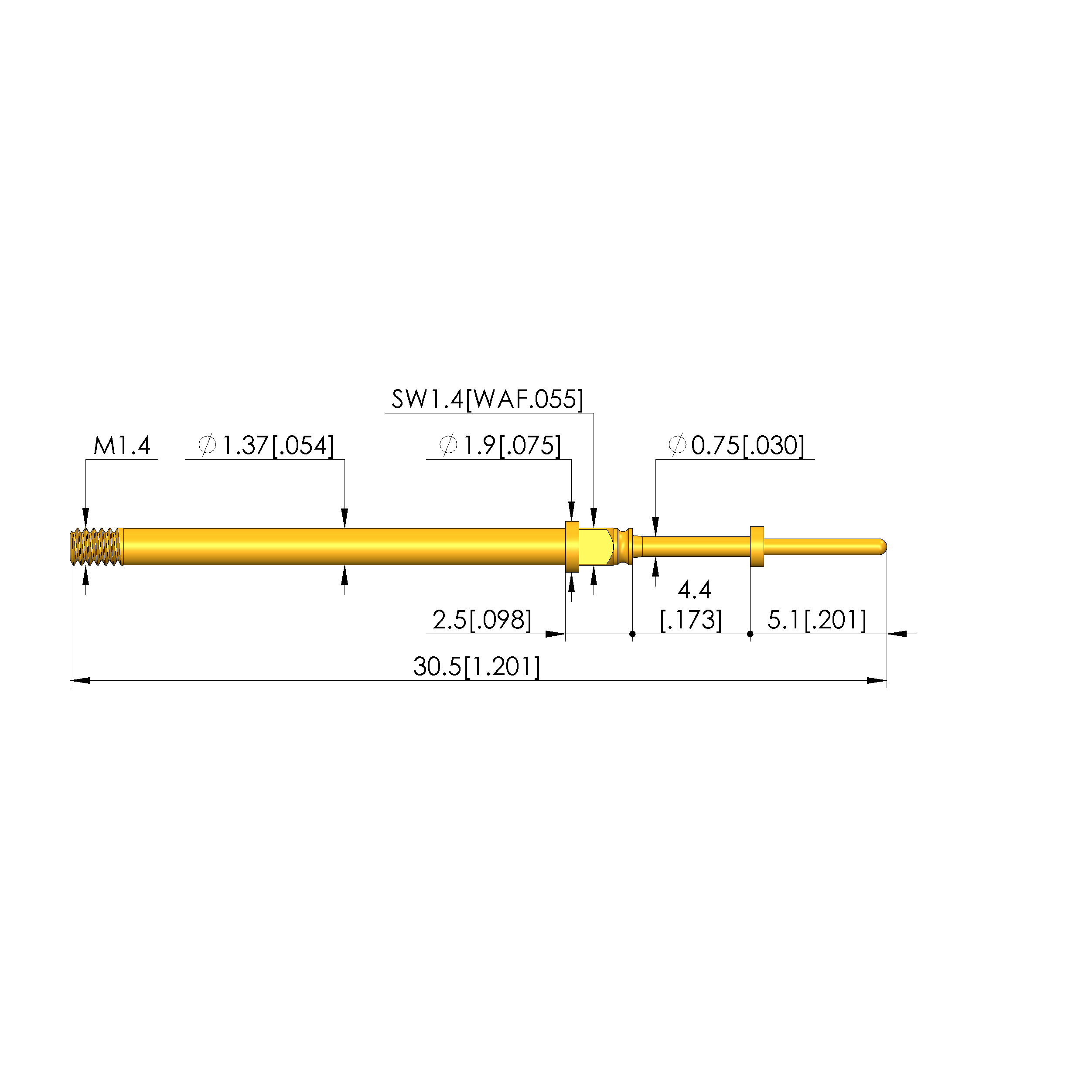 - Barrel diameter: 1.37 mm [.053 in]