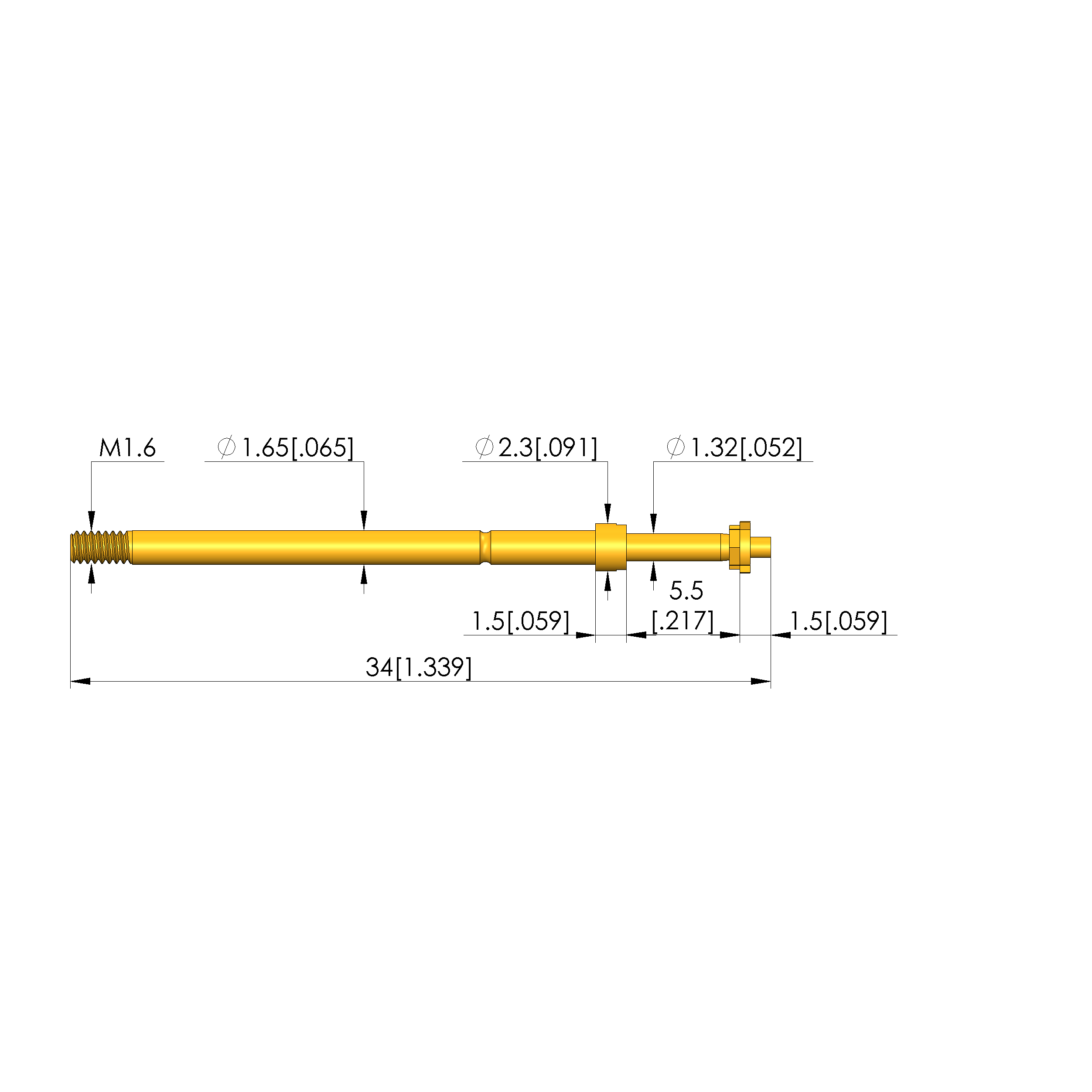 - Barrel diameter: 1.65 mm [.064 in]
