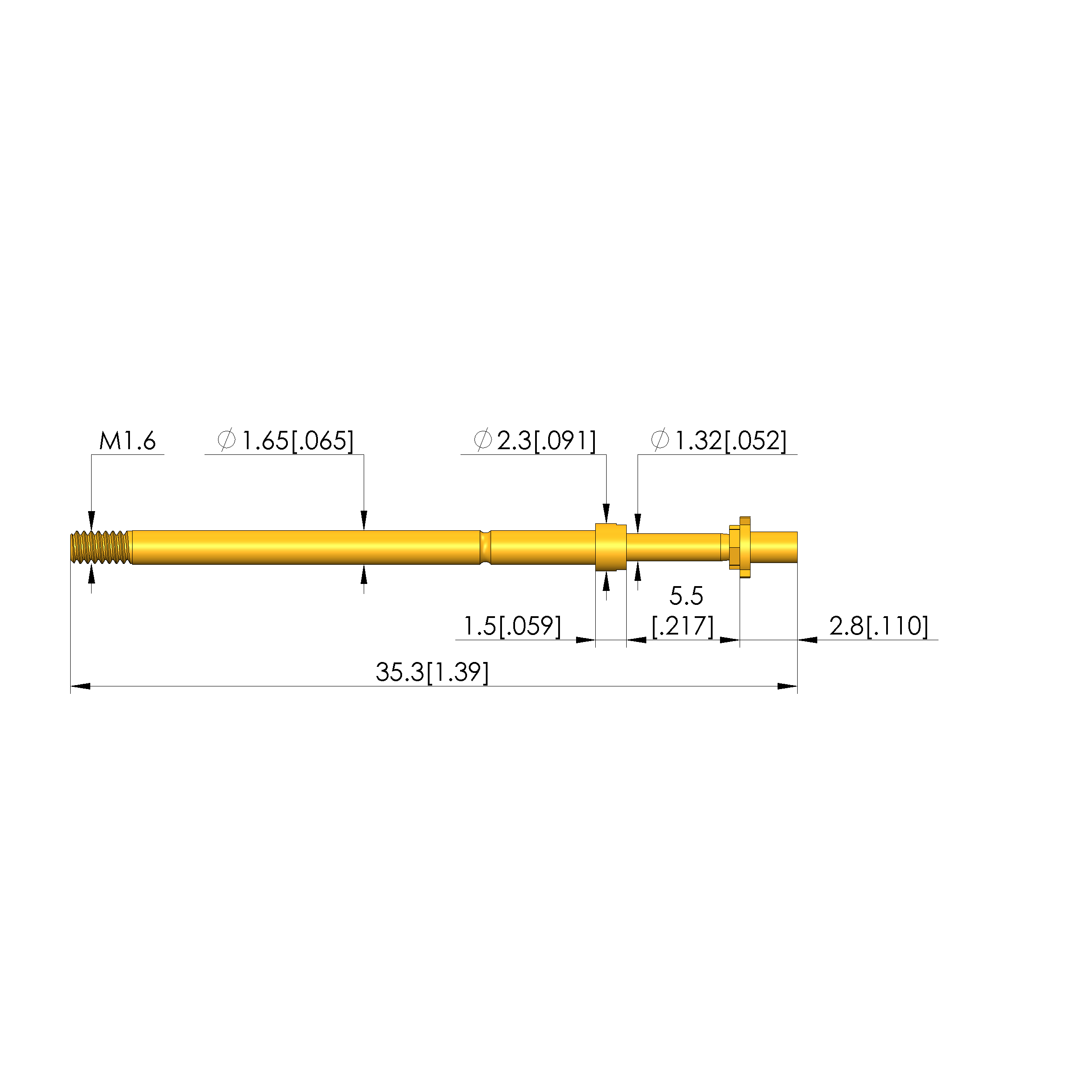 - Barrel diameter: 1.65 mm [.064 in]