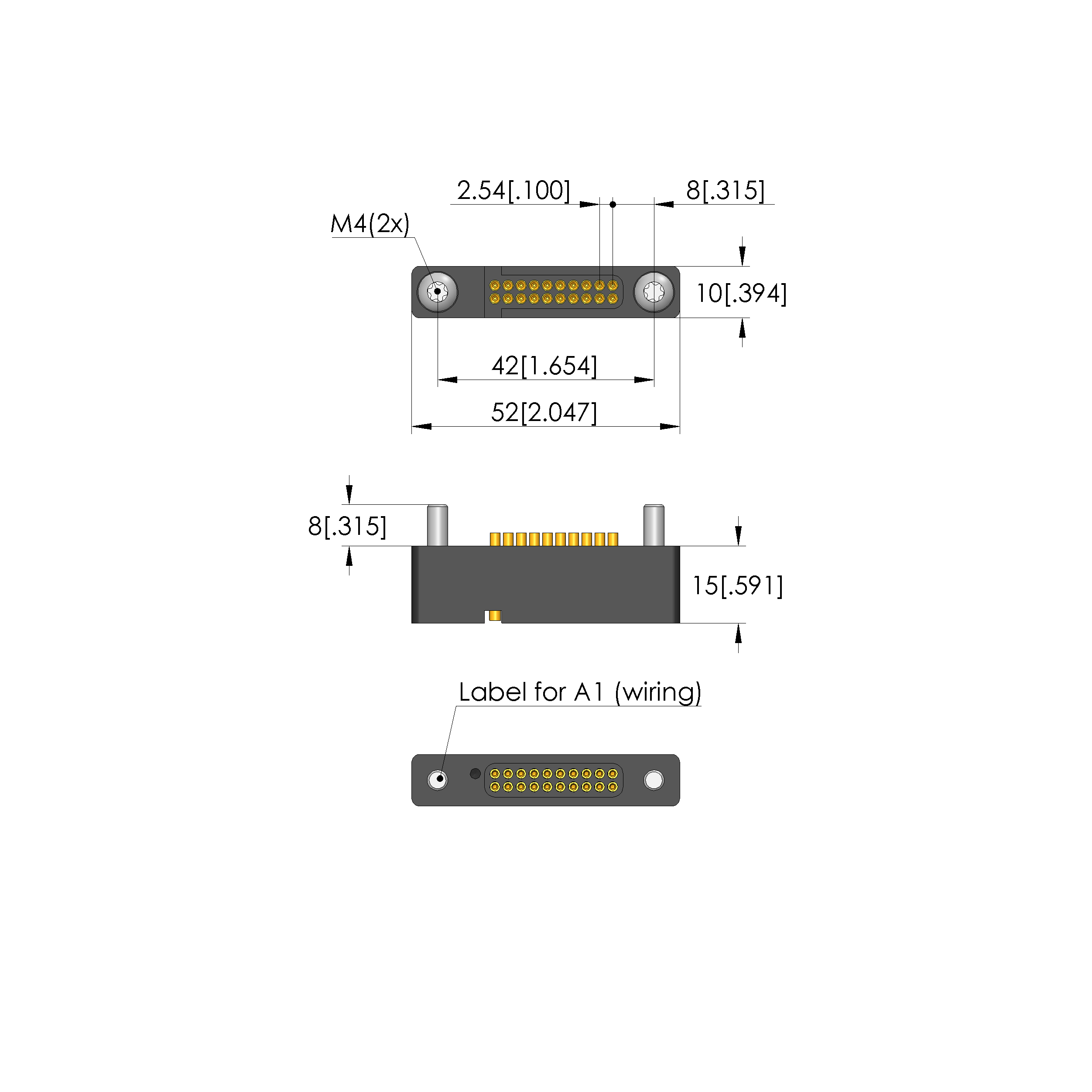- Installation grid: 2.54 mm [.1 in]