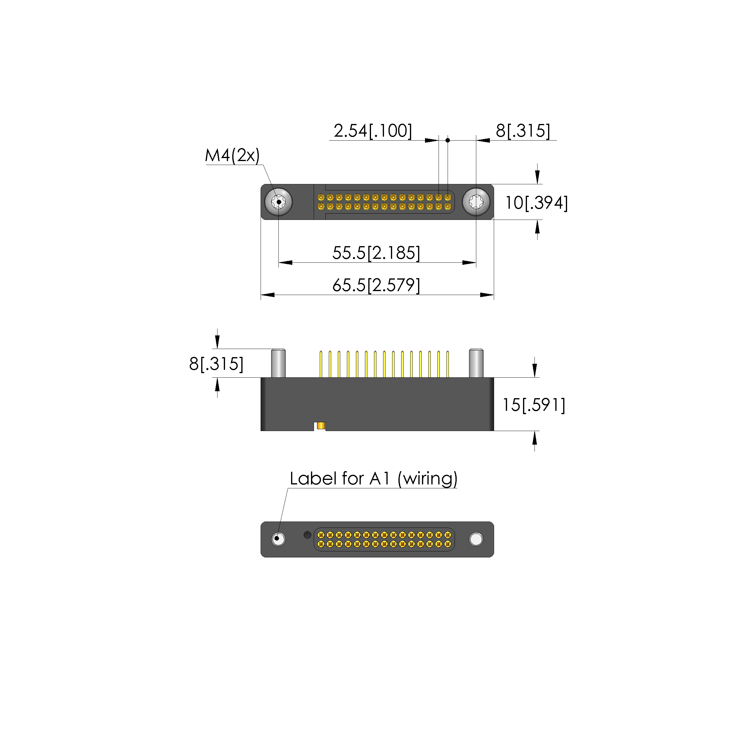 - Installation grid: 2.54 mm [.1 in]