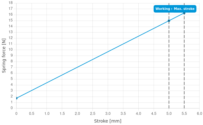 - Spring force at working stroke: 15 N [53.9 ozf]