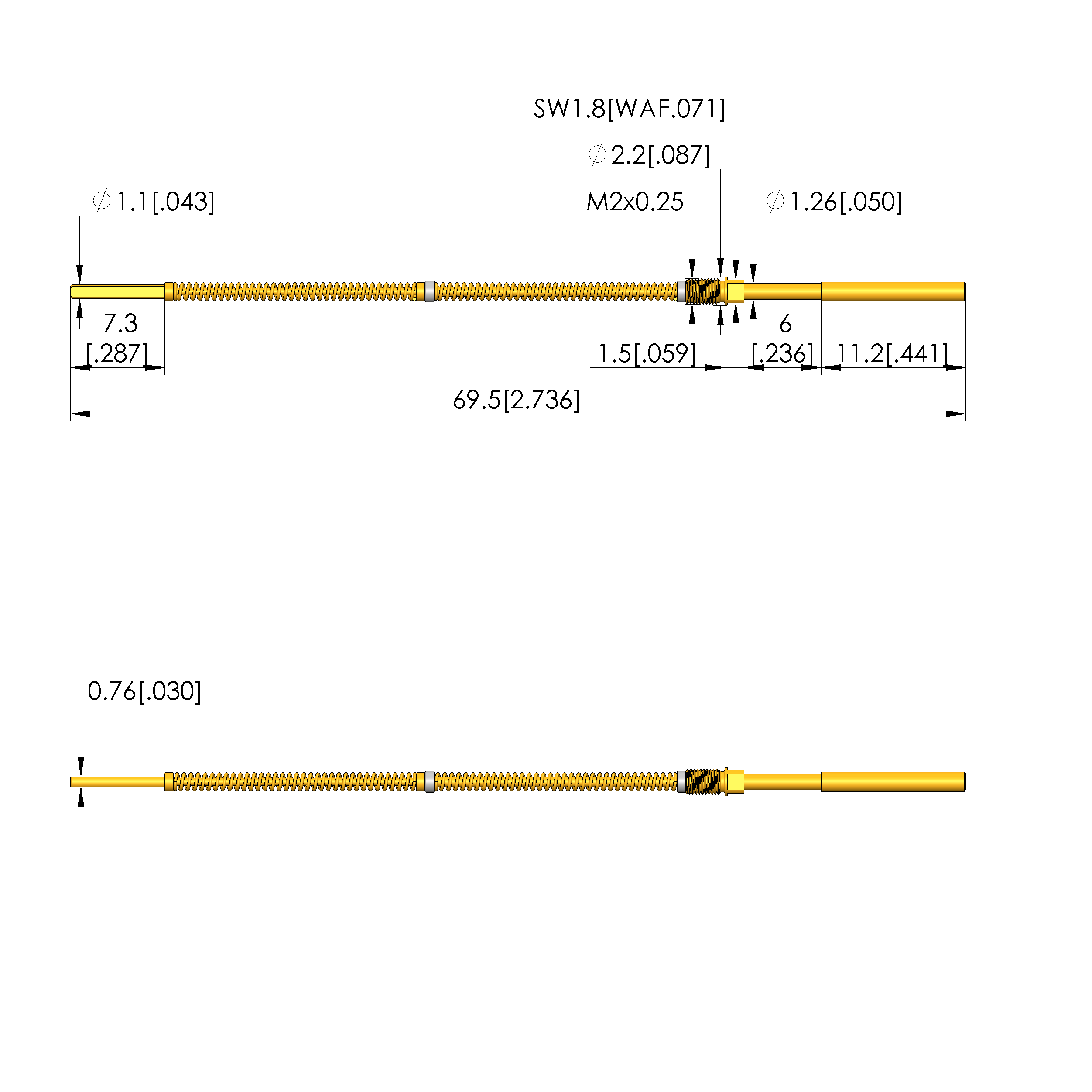- Continuous plunger: ø1,1 x 0,77 x 7,3