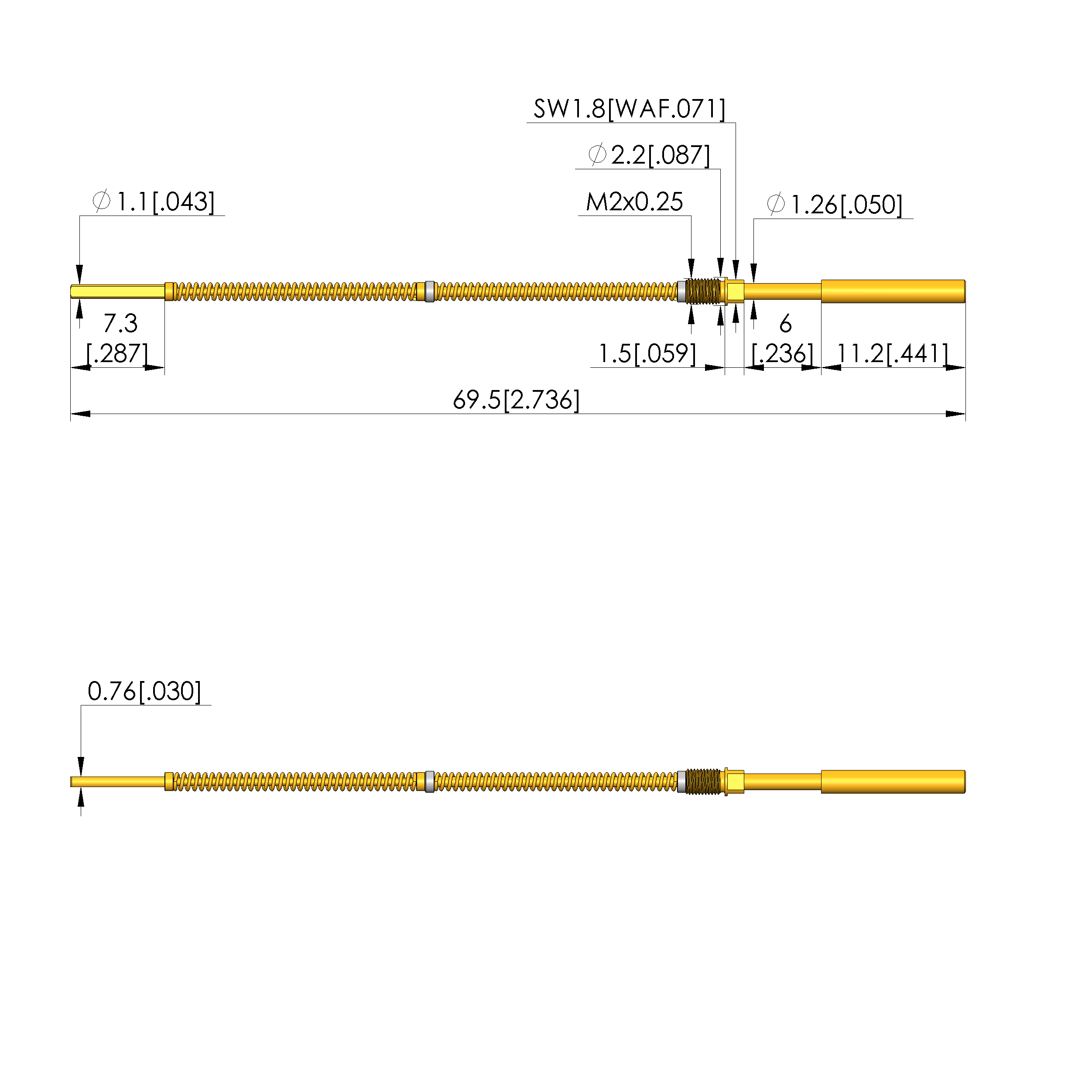 - Continuous plunger: ø1,1 x 0,77 x 7,3