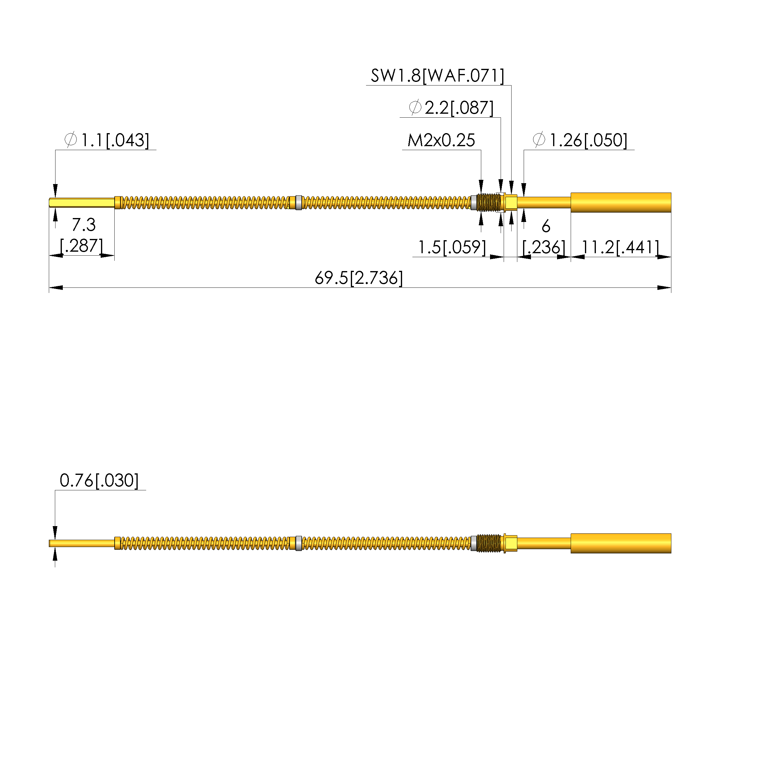 | Total length: | 69.5 mm [2.73 in] |