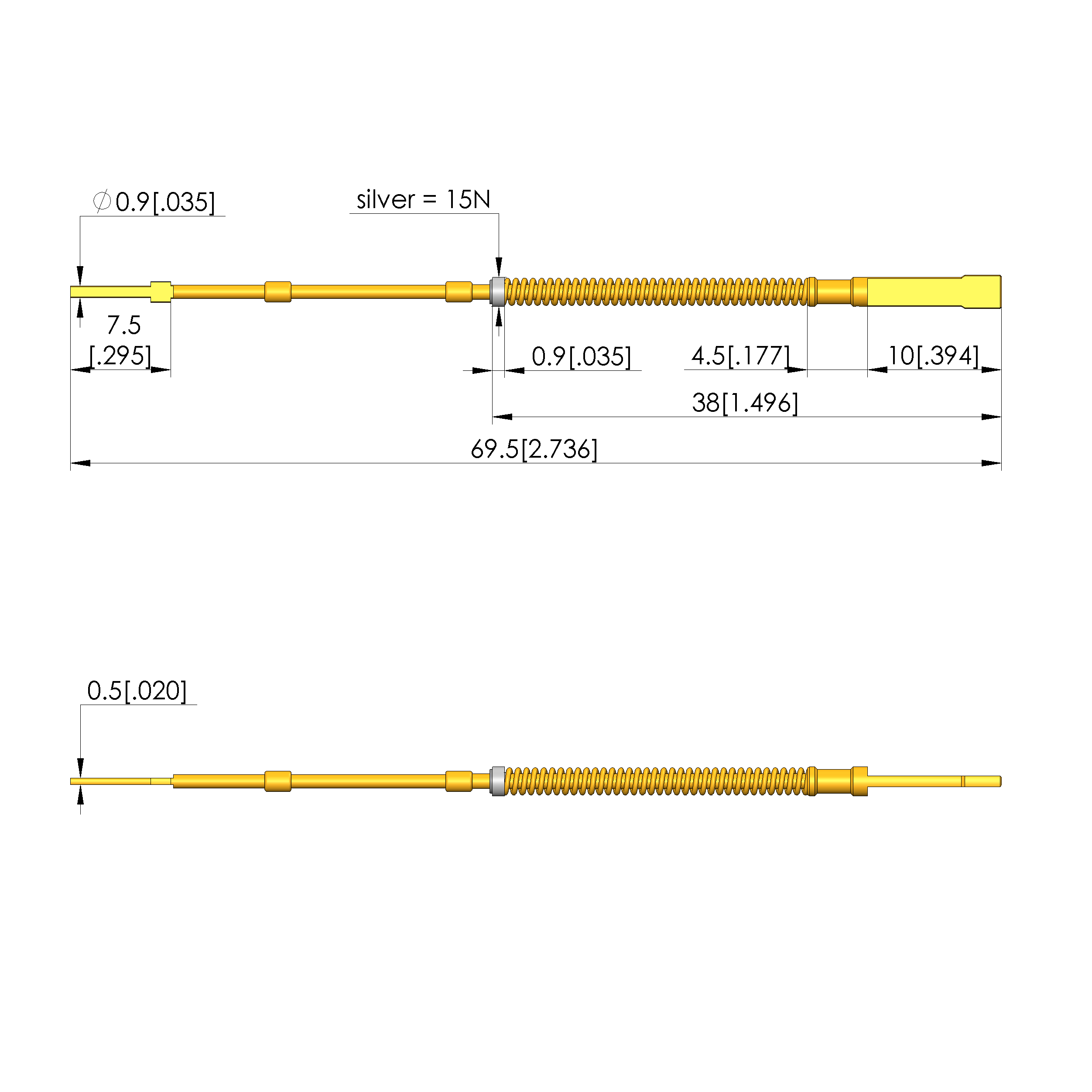 - Spring force at working stroke: 15 N [53.9 ozf]