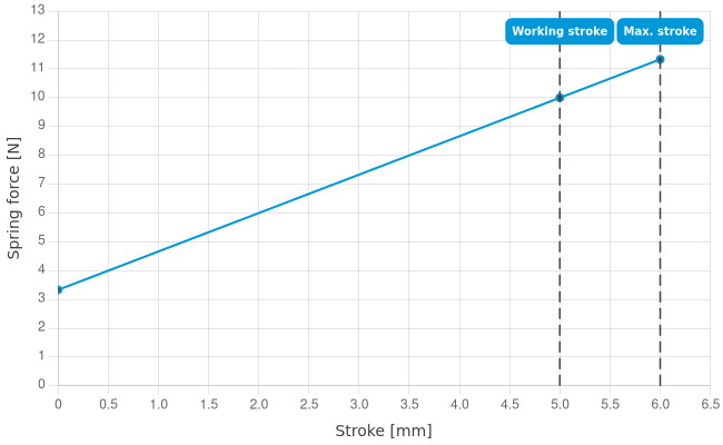 - Spring force at working stroke: 10 N [35.9 ozf]