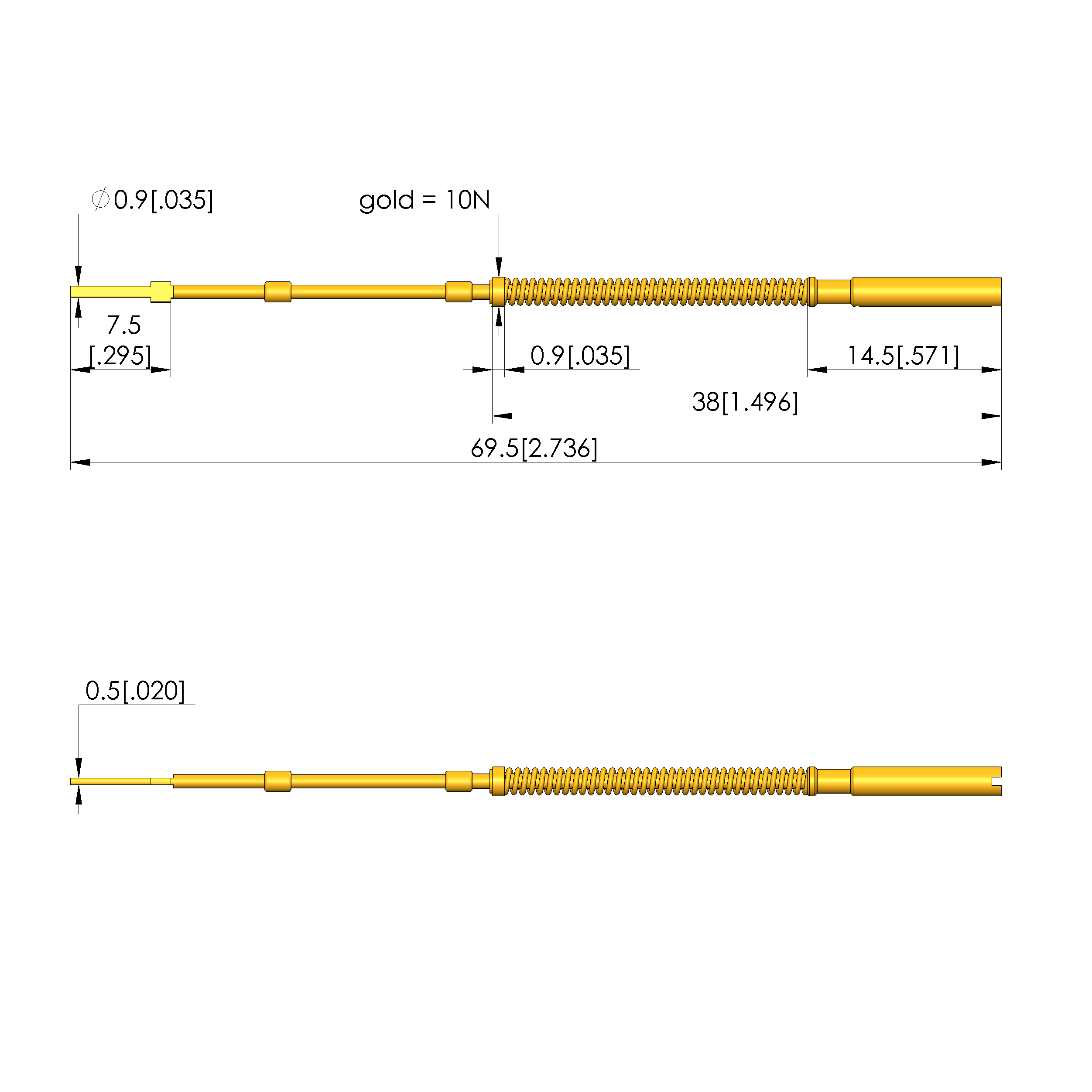 - Barrel diameter: 2 mm [.078 in]