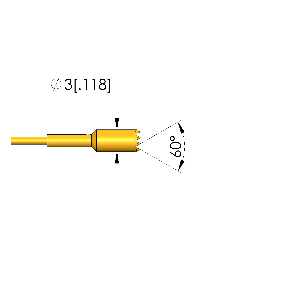 - Tip diameter: 3 mm [.118 in]