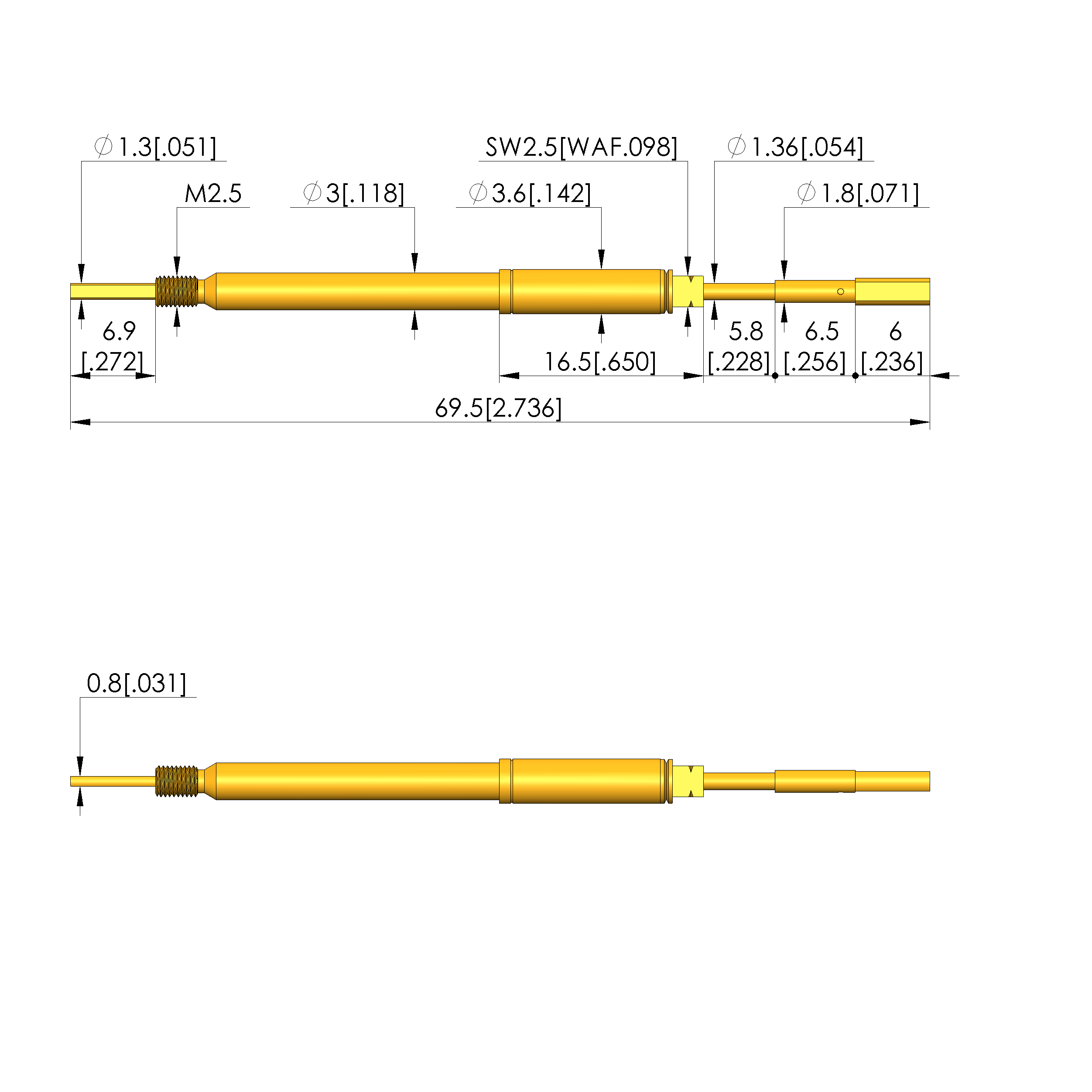 | Continuous plunger: | ø1,3 x 0,8 x 6,9 |