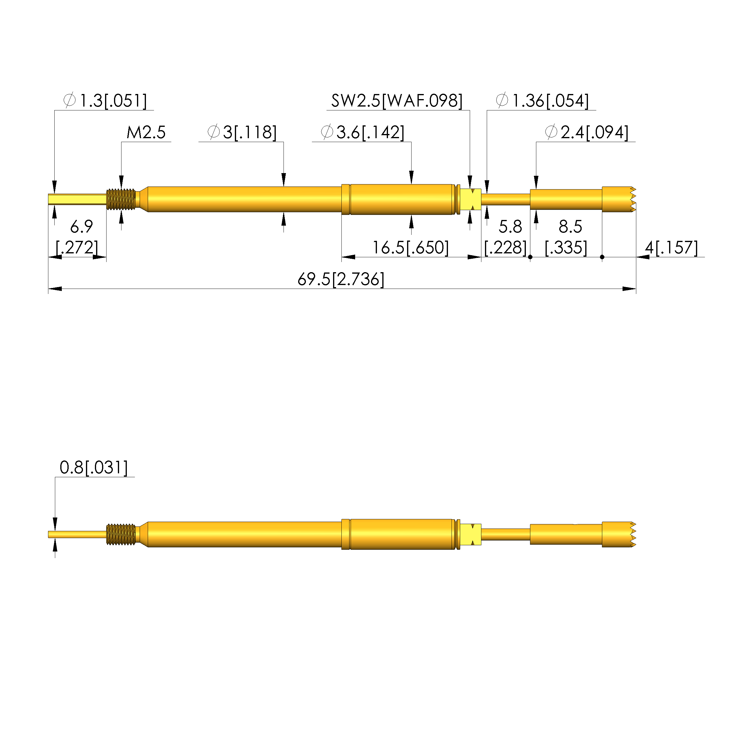 • Total length: 69.5 mm [2.73 in]