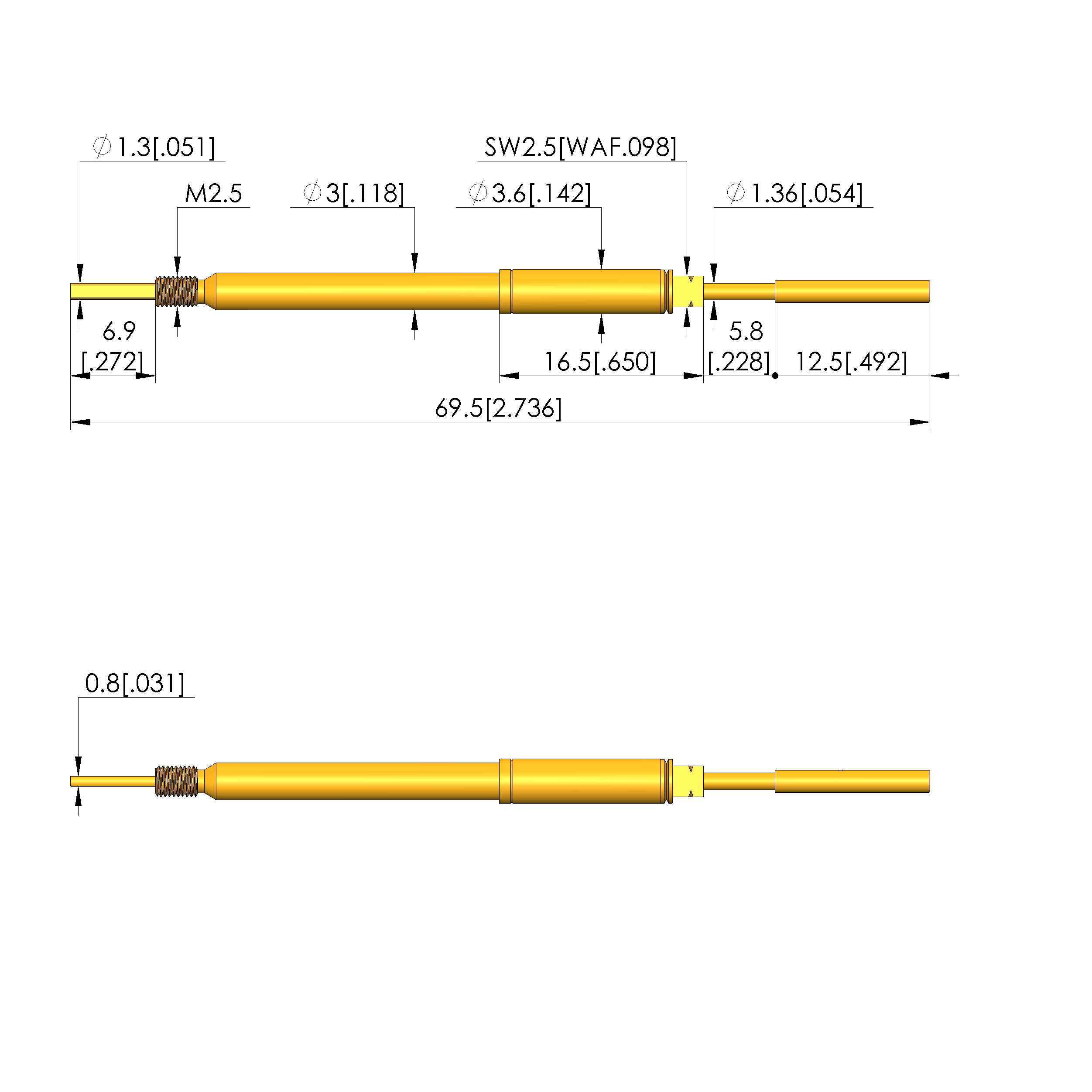 | Total length: | 69.5 mm [2.73 in] |